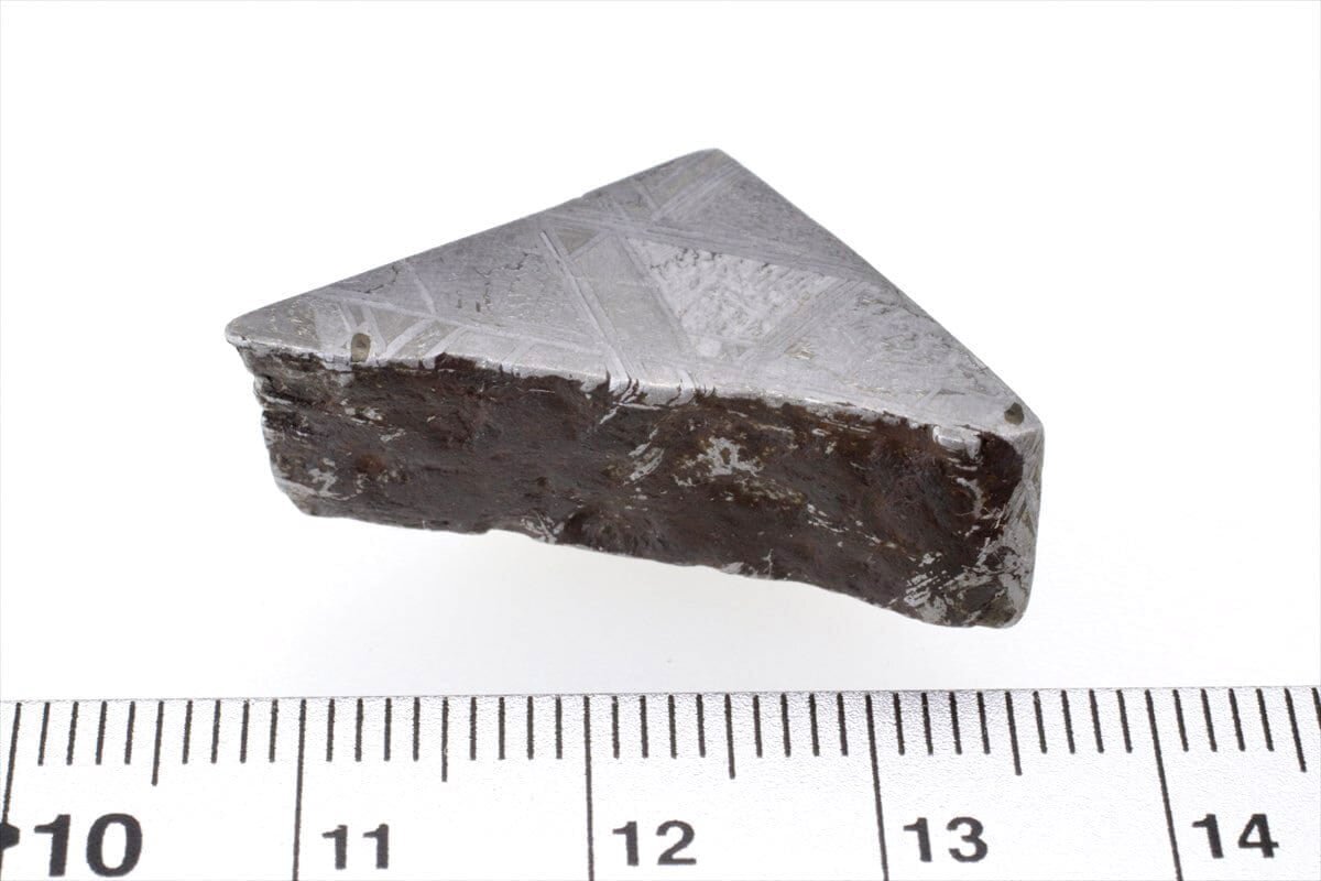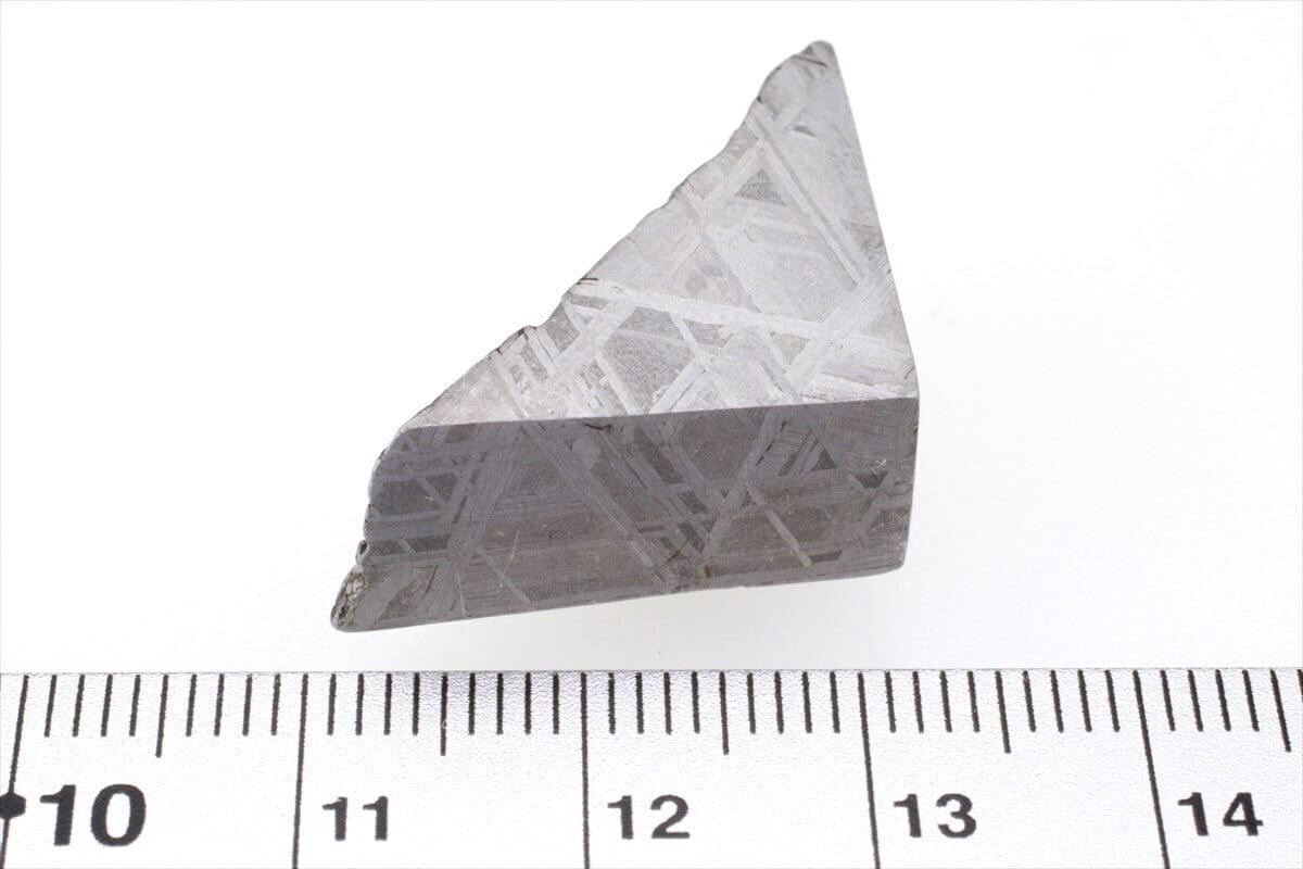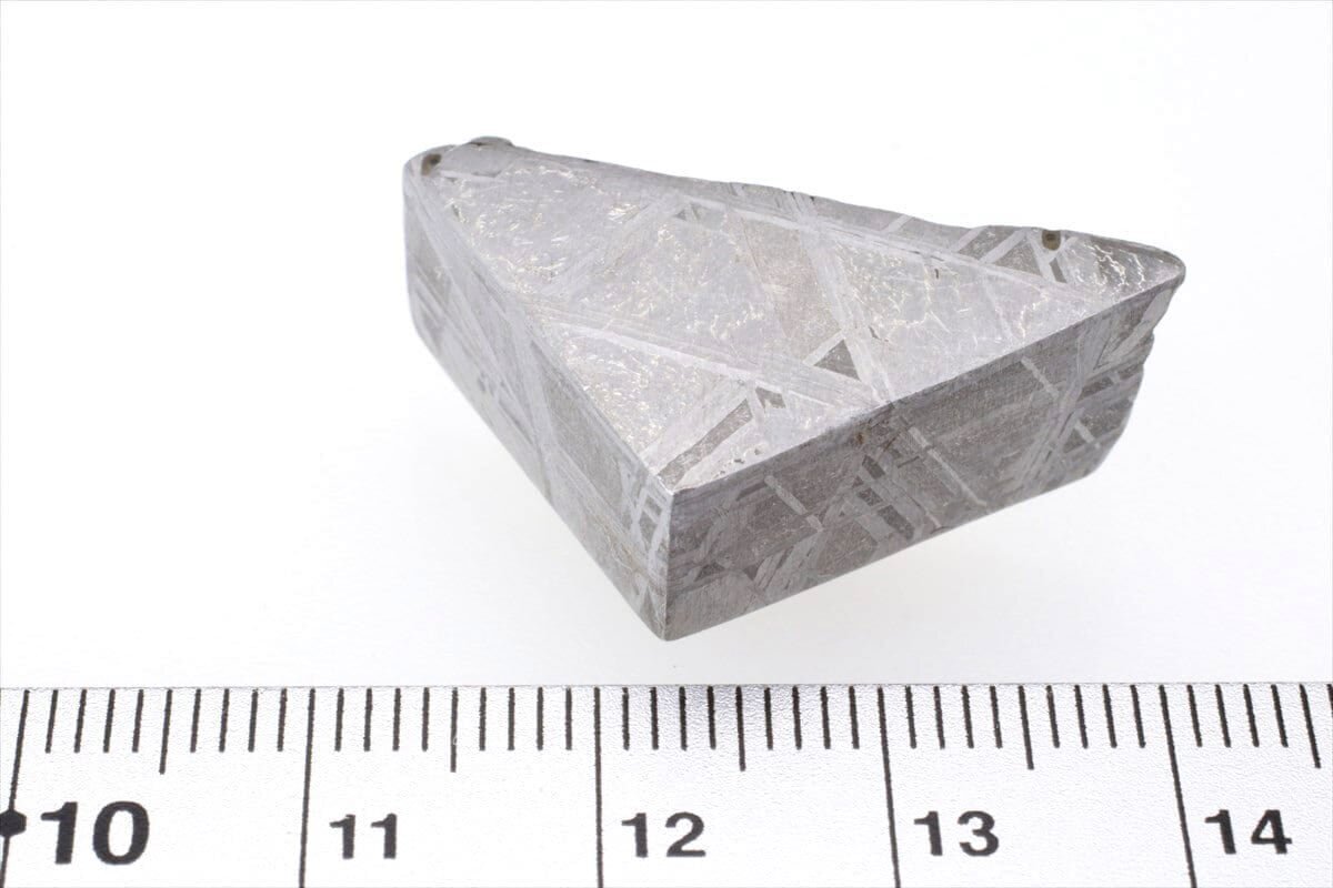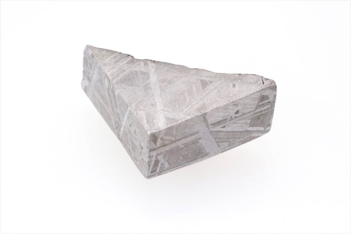 オクタヘドライトという名前はテーナイトの結晶格子の角にカマサイトが成長し八面体(オクタへドロン)構造になることに由来しており、酸処理を施すとカマサイトよりも酸に溶けにくいテーナイトが浮かび上がり特徴的な模様のウィドマンシュテッテン構造が現れます。ウィドマンシュテッテンとは構造を一番初めに論文として発表したカウント・アロイス・フォン・ウィドマンシュテッテン氏からきています。