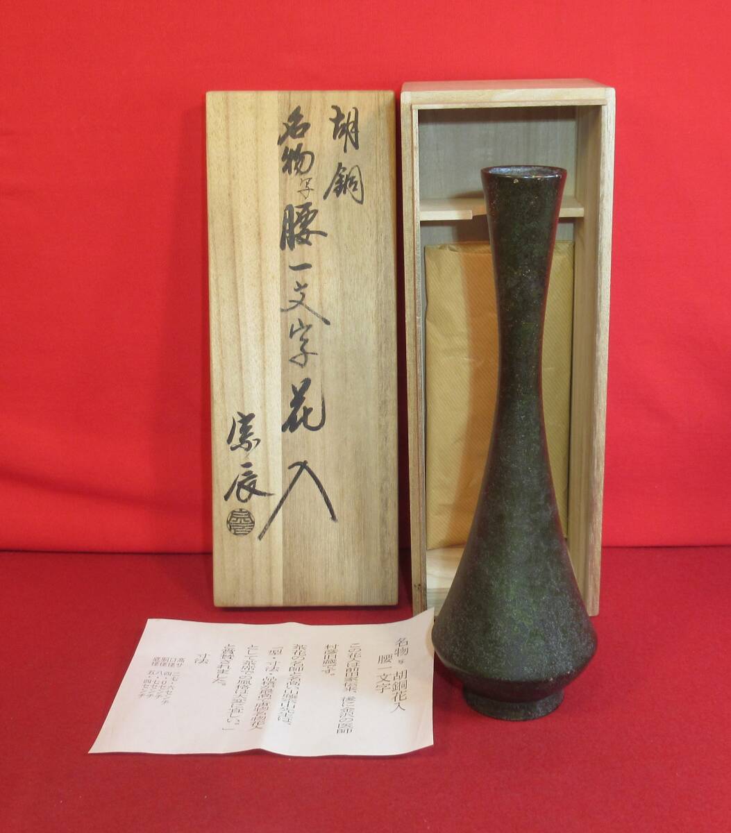 サイズは、口径高さ27,6×胴径8.7×底径5,4㎝です。在銘「宗辰」共箱です。美品です。金工師四世 一ノ瀬宗辰作 在銘「宗辰」