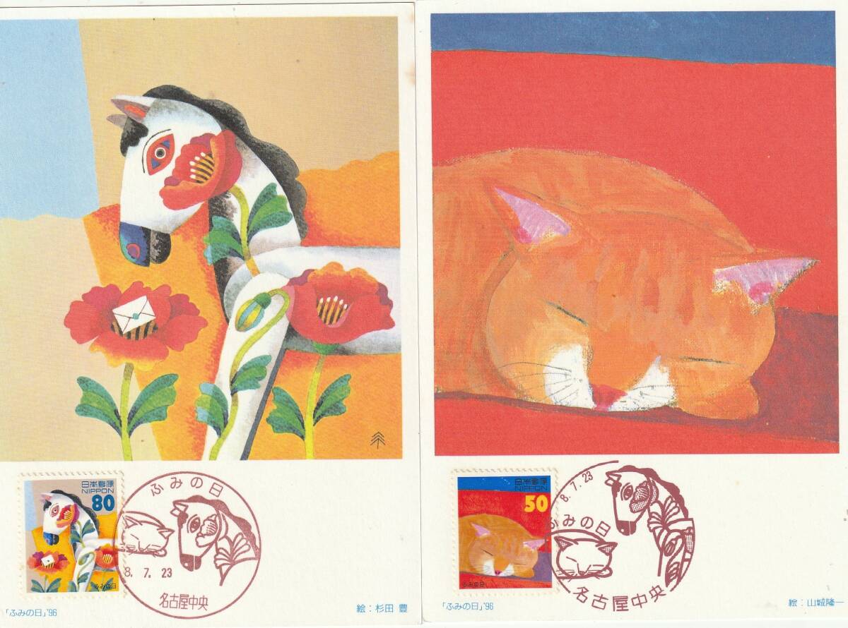 MC  1996年  ふみの日   50円80円  2通  絵 山城隆一-杉田豊