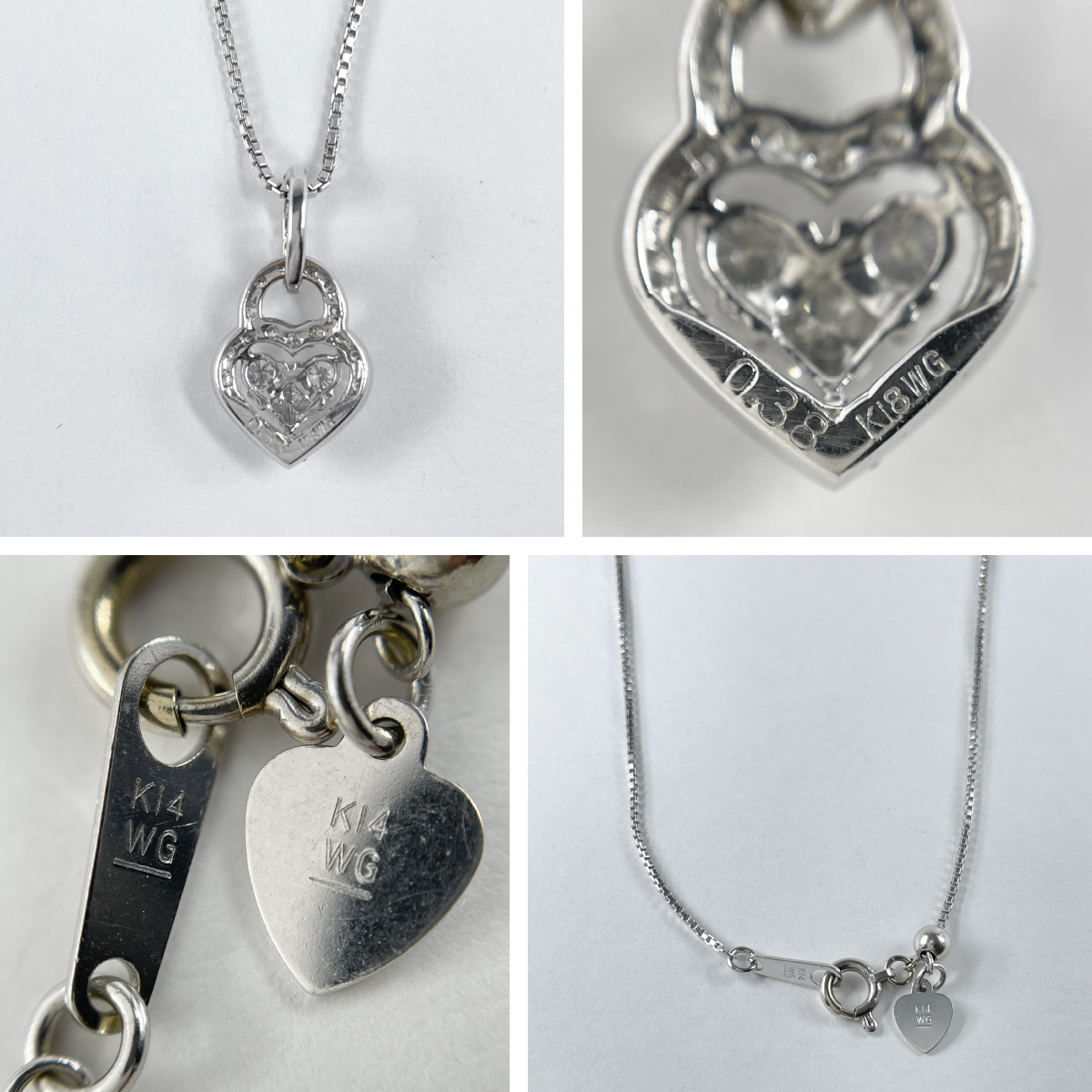 K18WG K14WG 天然ダイヤモンド 0.38ct ネックレス