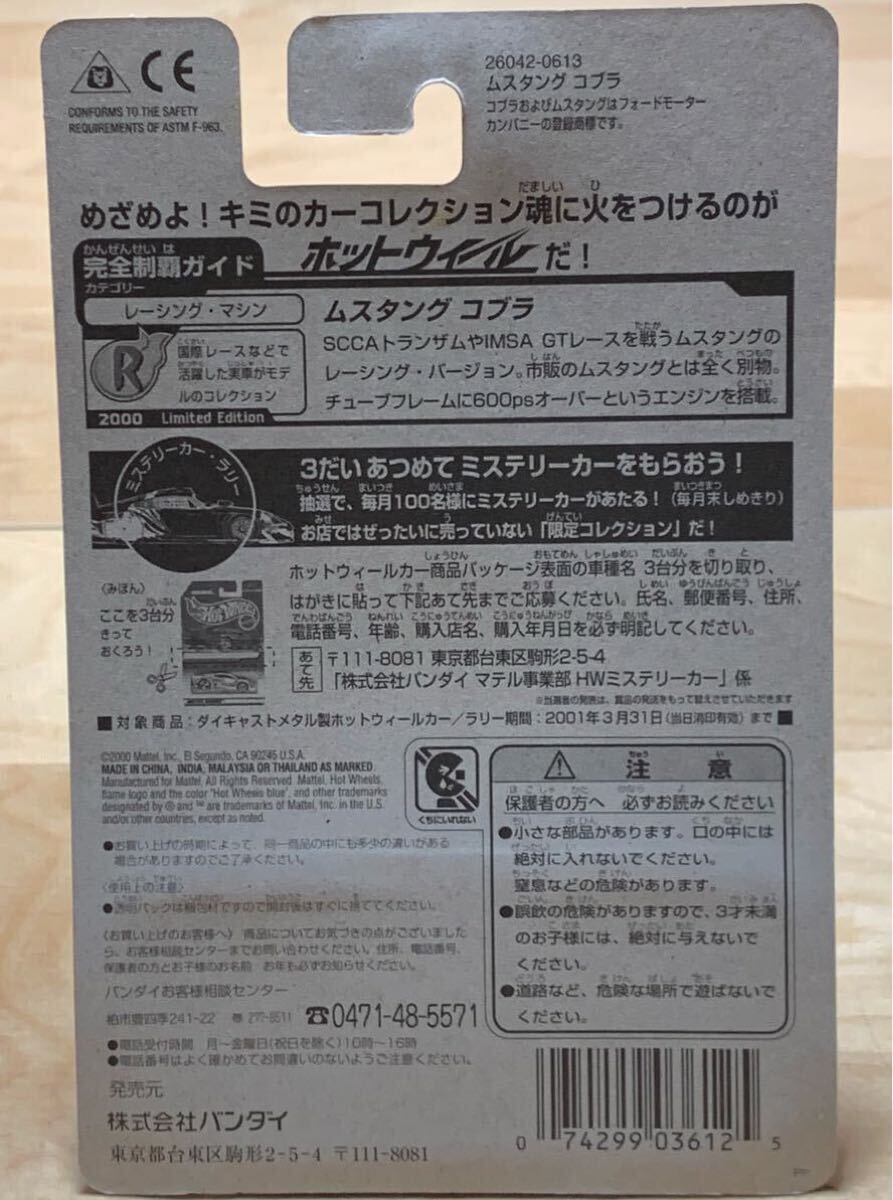 HOT WHEELS ホットウィール ムスタング コブラ Mustang Cobrar 日本語カード
