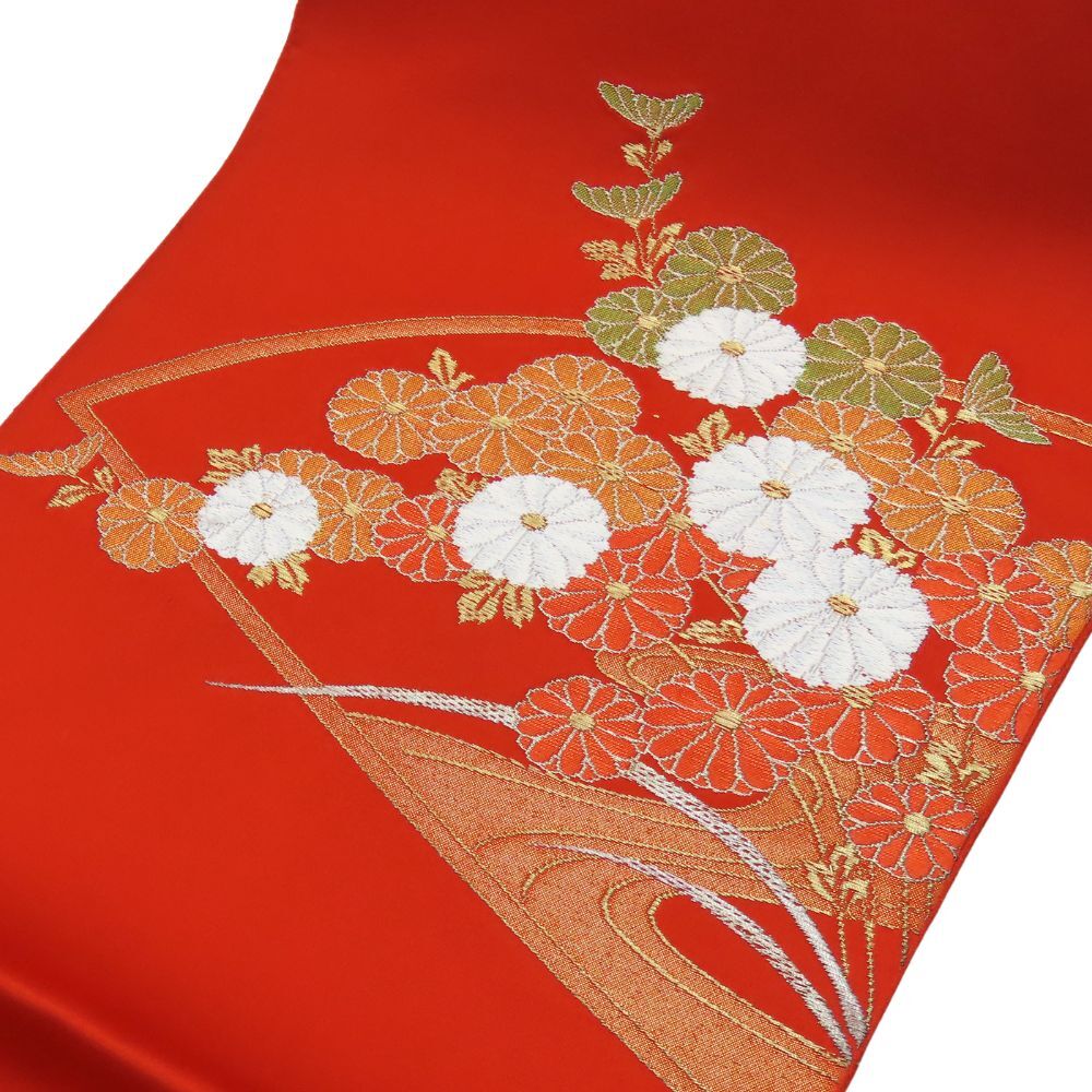 | 品名 | 【中古】 名古屋帯 八寸 ポリエステル 朱色 オレンジ 松葉仕立て レディース 女性 |