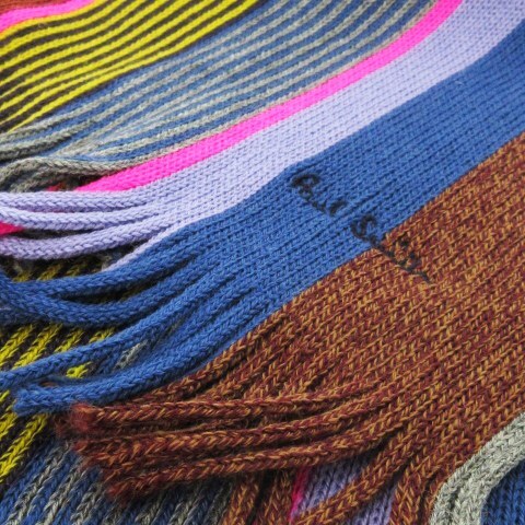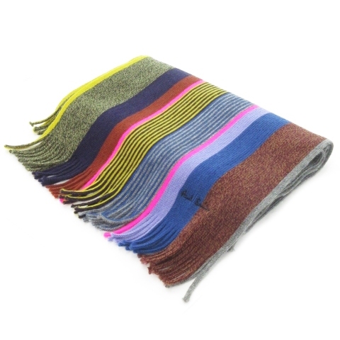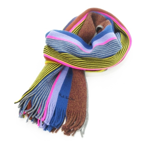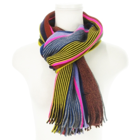 ポールスミス PAUL SMITH マフラー ニット フリンジ リブ インターシャ マルチストライプ ロゴ刺繍 マルチカラー ■GY18 メンズ