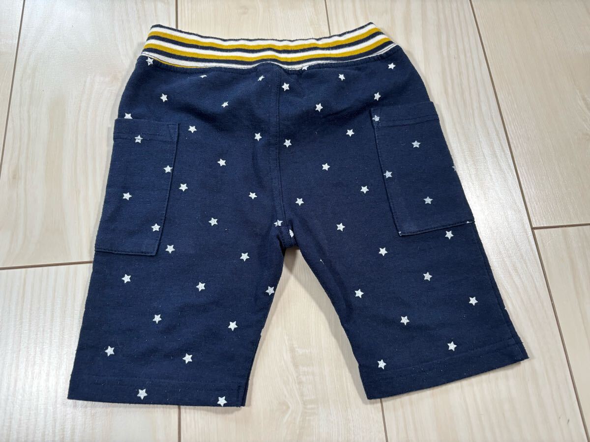 ☆ブランド・・・不明 ☆お色・・・ネイビーに白の星柄 ☆サイズ・・・90 平置きの状態で、ウエスト・・・21.5cm 股下・・・12.5cm です。 素人寸法ですので参考程度にお考え下さい。 ☆薄手のジャージー素材のハーフパンツです。 サイドにポケットがついているおしゃれなデザインです。 ☆ほつれ等の痛みはありませんが、多少の生地の馴染み、色褪せ等はあるかと思います。 ご理解の上ご入札下さい。 ☆神経質な方、細かいことをお気にされる方は入札をご遠慮下さい。 ☆自己紹介も必ずお読み下さい。
