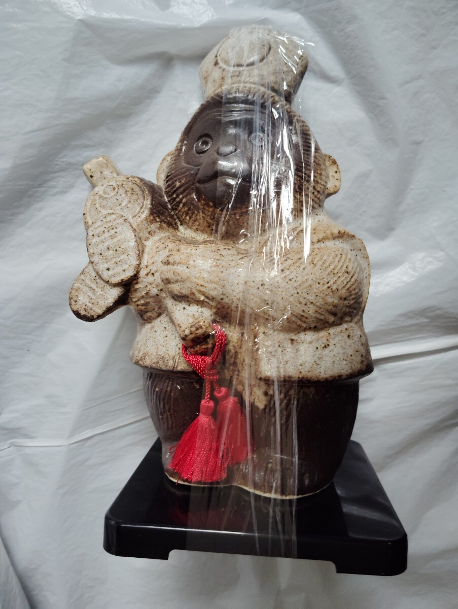 猿 小判 小槌 縁起物 金運? 開運? 陶器 置物 インテリア ガーデン オブジェ 干支 焼き物 飾り物 フィギュア