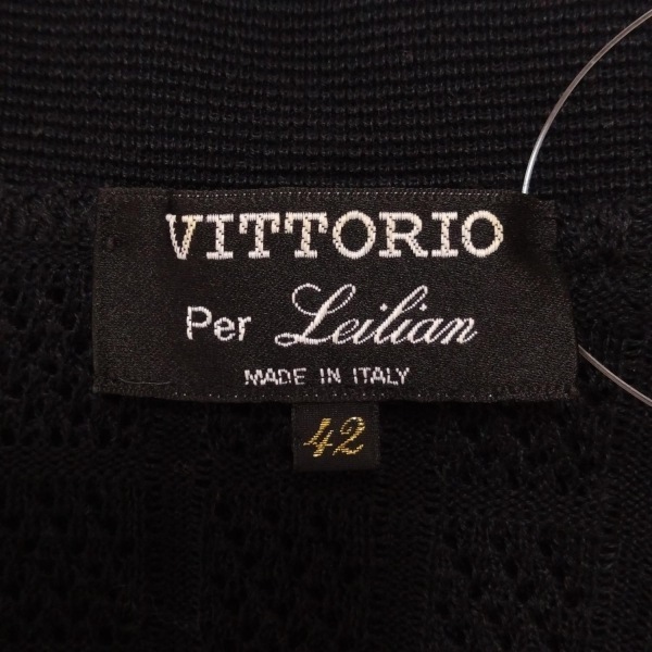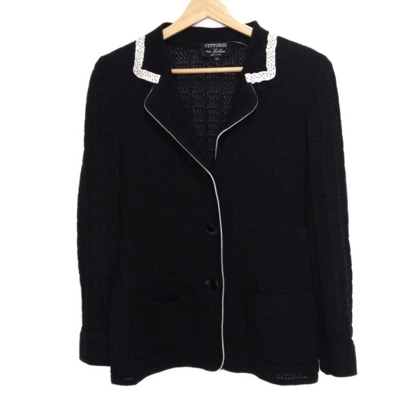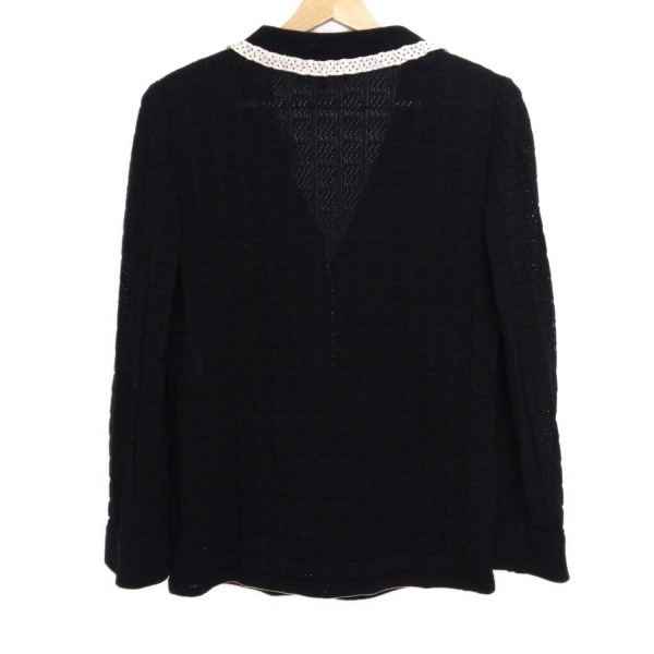 レリアン Leilian カーディガン サイズ42 L - 黒×白 レディース 長袖/肩パッド トップス