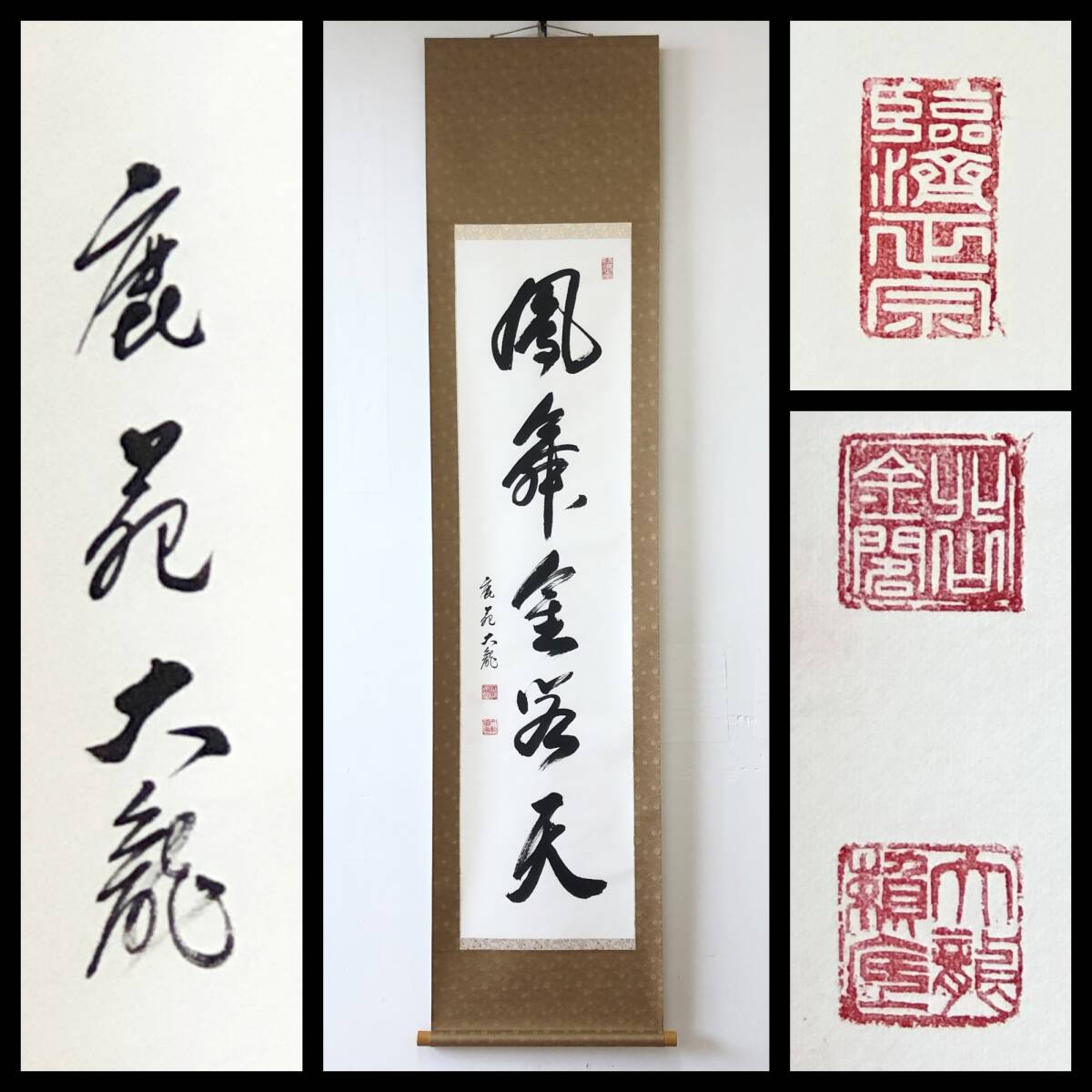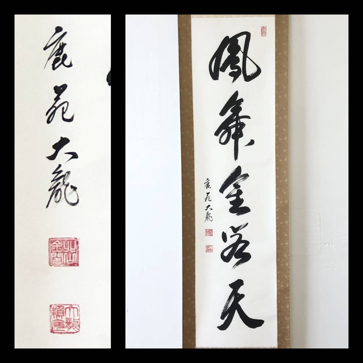 全体サイズ(軸先含む) : 192×49.5(cm) 本紙サイズ : 134×33(cm) 若干の誤差はご了承下さい。 本紙:傷み等は見られません、未使用に近い状態です。 表具:未使用に近い状態です。 箱:合箱付。 その他、詳細は画像をよくご確認ください。 画像で表現しにくい薄い汚れやシミは予めご了承下さい。 画像は現物を撮影しておりますが、照度、遮光、モニターによっては実物と色目が異なって見えることがありますので、ご注意下さい。 |