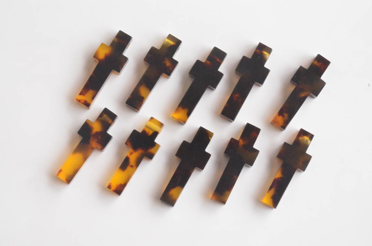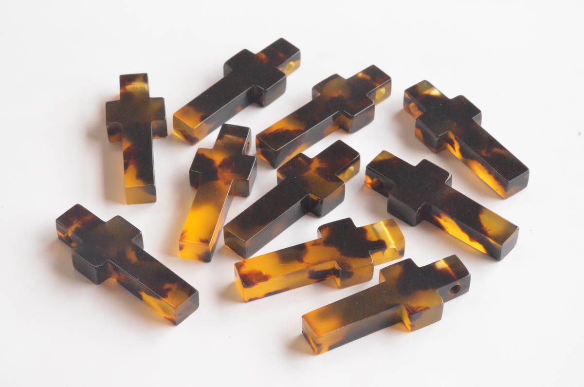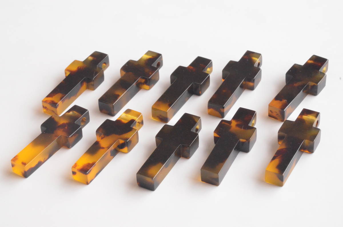 アセテート クロス チャーム べっこう柄 10個セット ハンドメイド素材 十字架