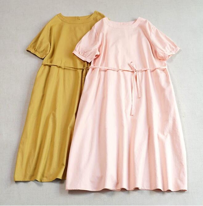 新品ワンピース オシャレ 大人可愛 ゆったり Aライン チュニック フリーサイズ ナチュラル 綿麻混お色選択可