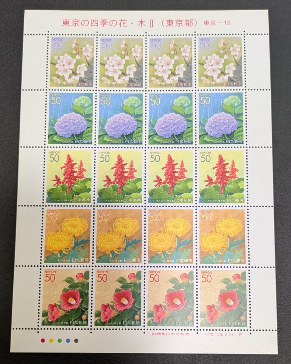 2001年・ふるさと切手-東京の四季の花Ⅱ・木(東京都)シート