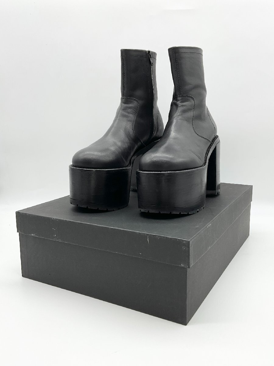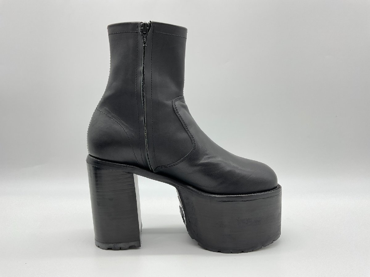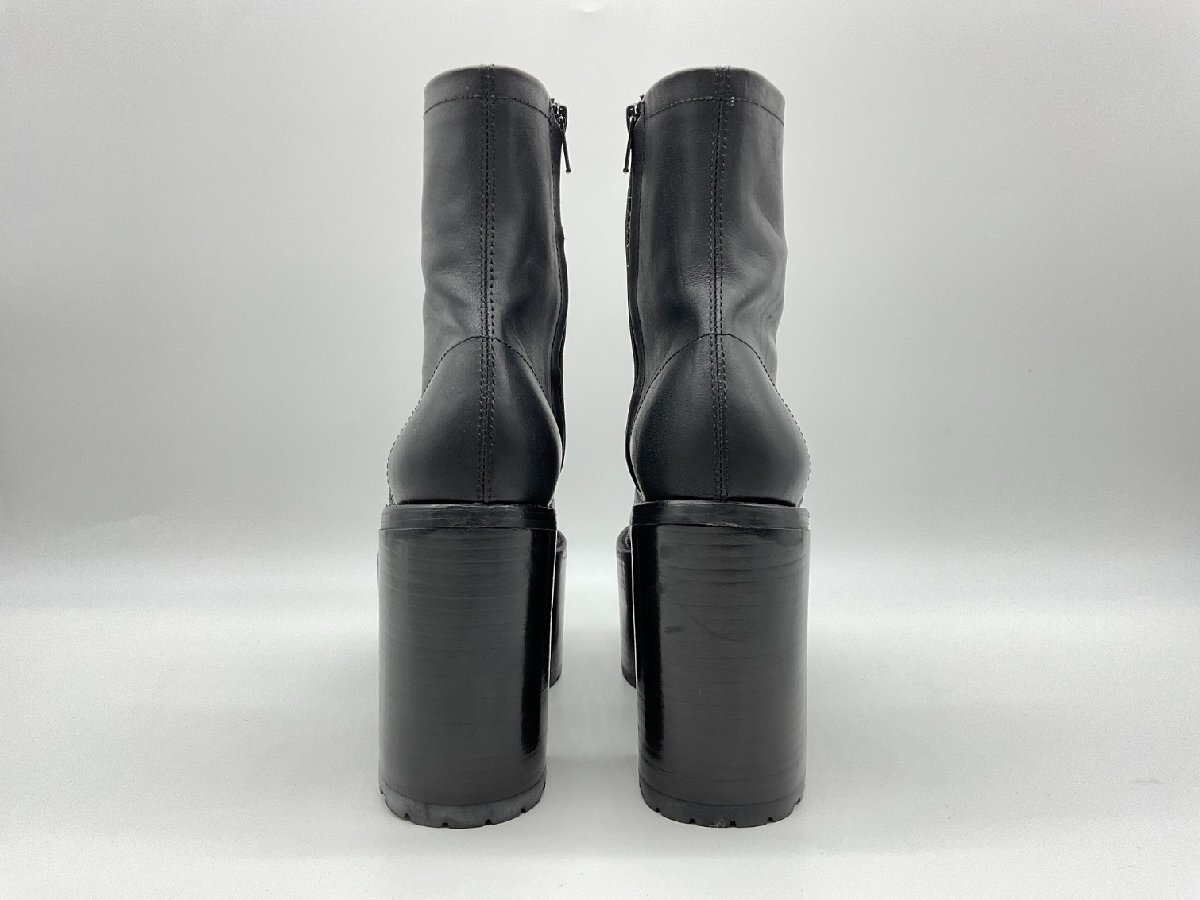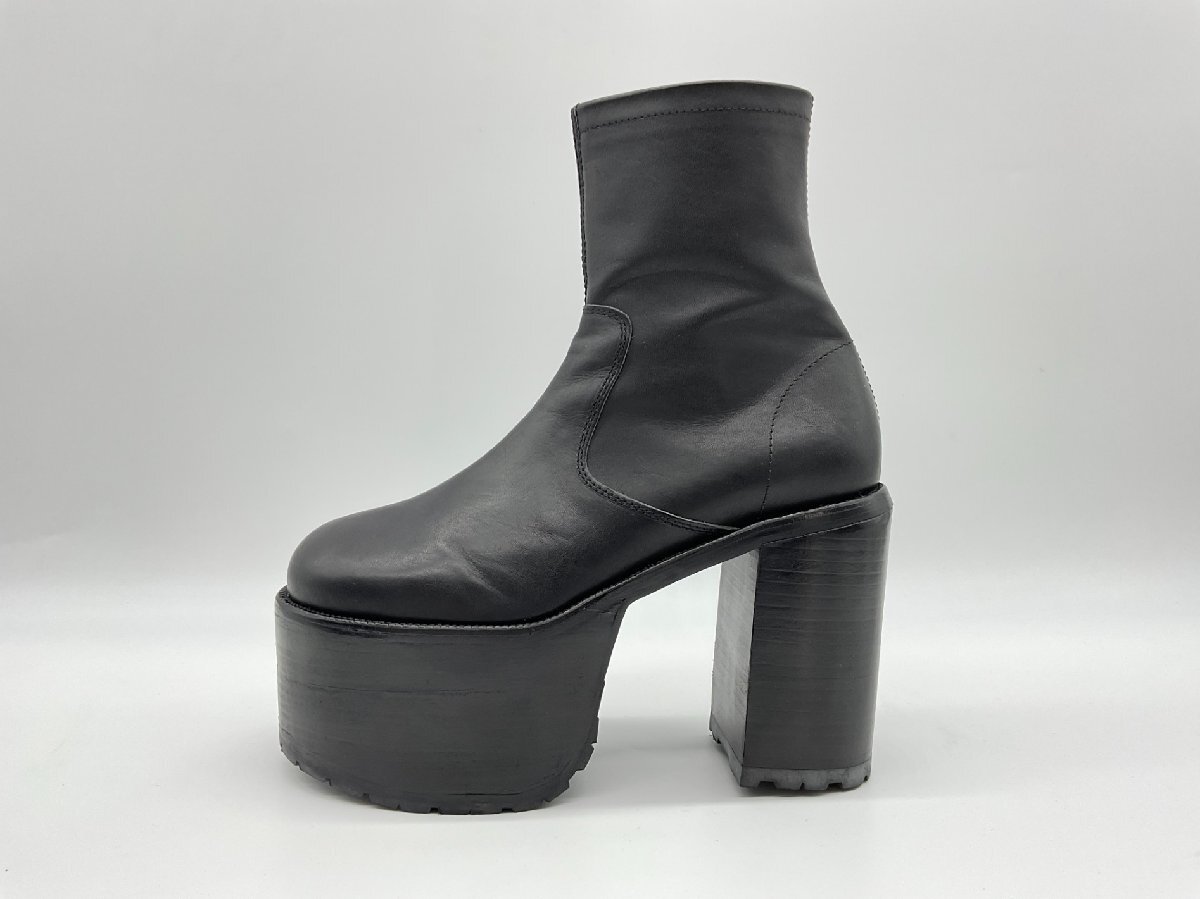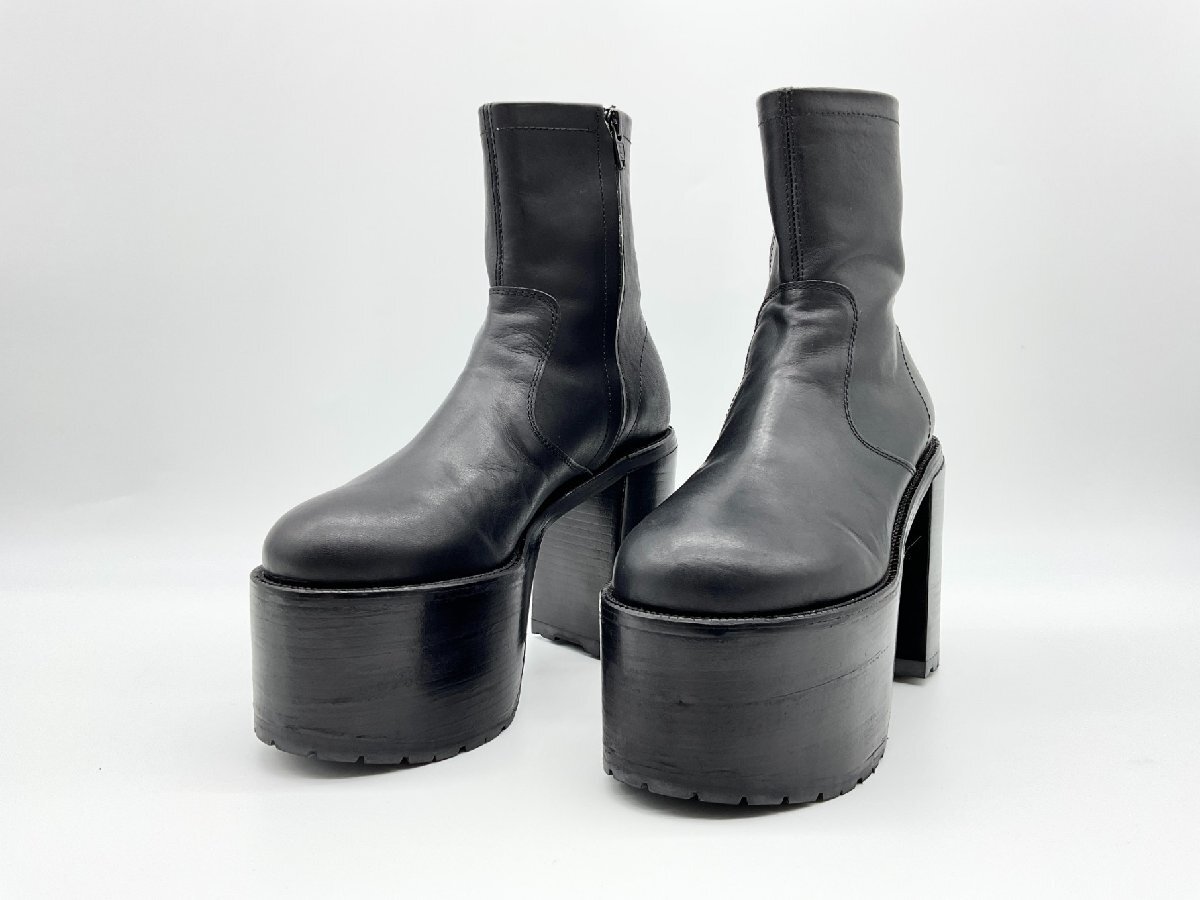 【紹介文】:厚底プラットフォームでスタイルアップ効果、ソリッドなレザー製、耐久性、ヒール重心が安定し、歩きやすさも確保されているモデル