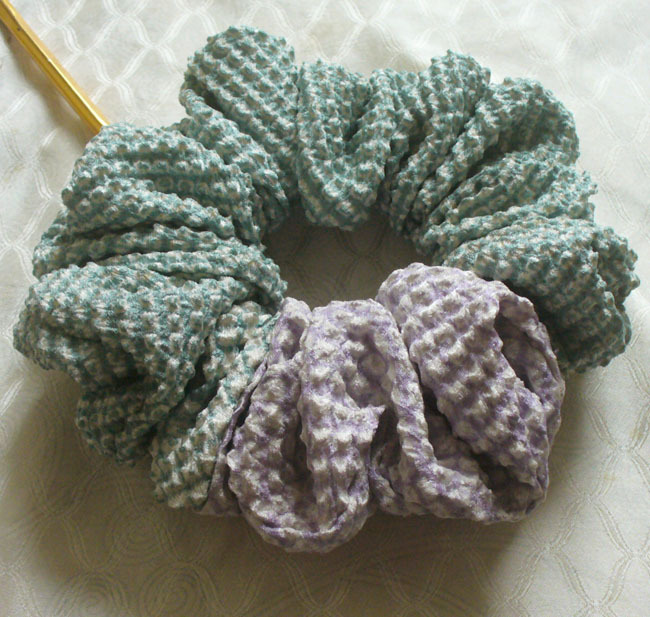 ゴム交換可能 総絞り鹿の子 不思議色2種 フリル シュシュ 着物リメイク シルク 和柄 手縫い ハンドメイド リメイク 着物 和物