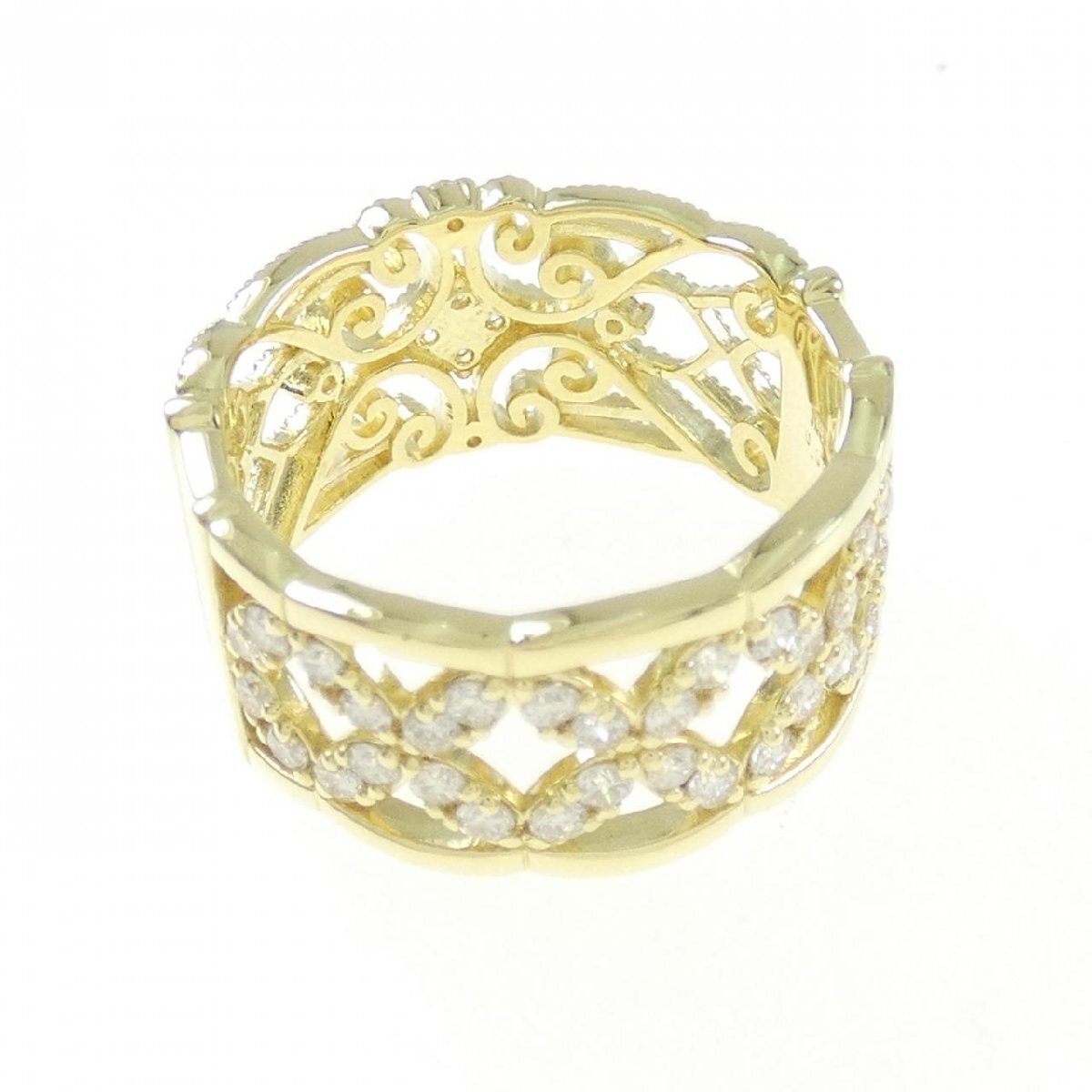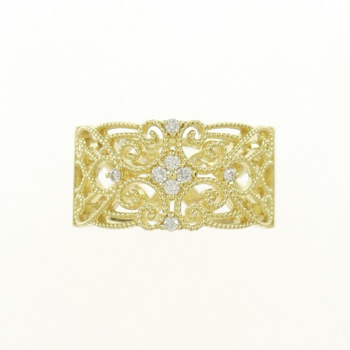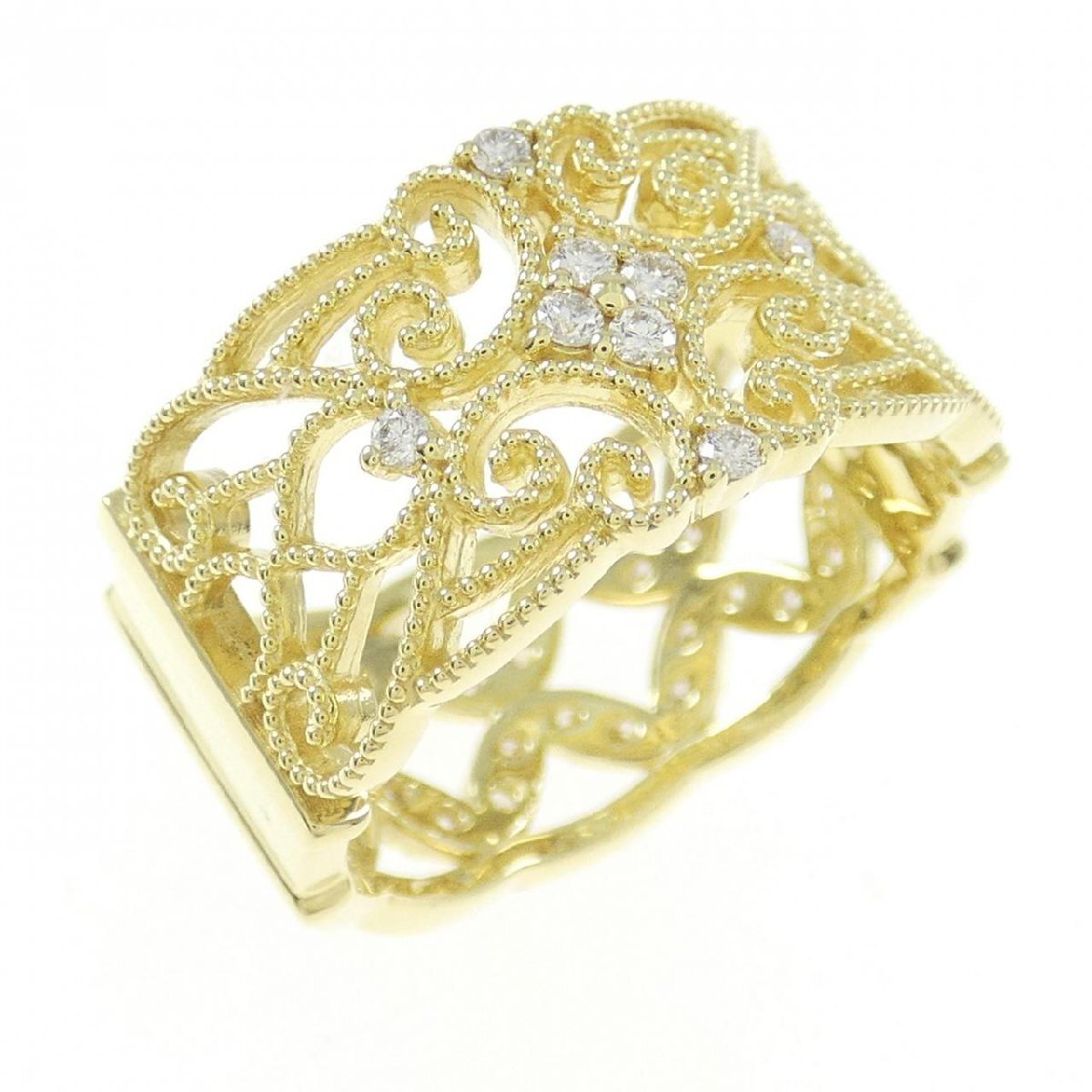 眩く輝くダイヤモンドをあしらったリング。繊細な透かし模様がエレガントなジュエリーです。