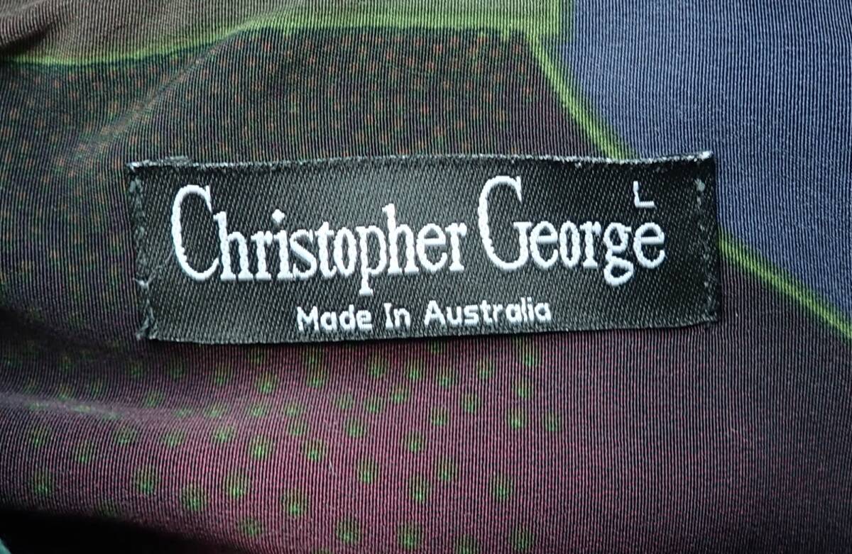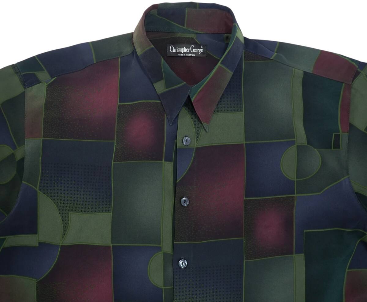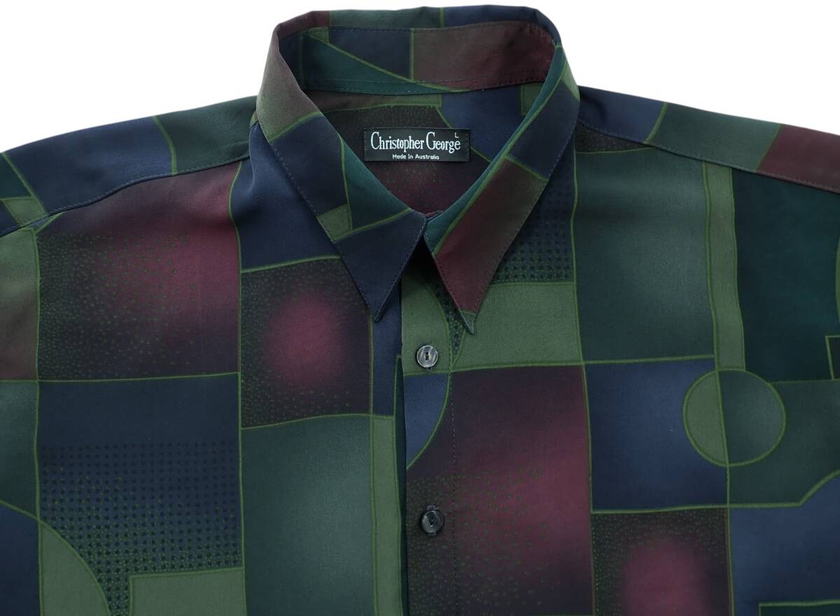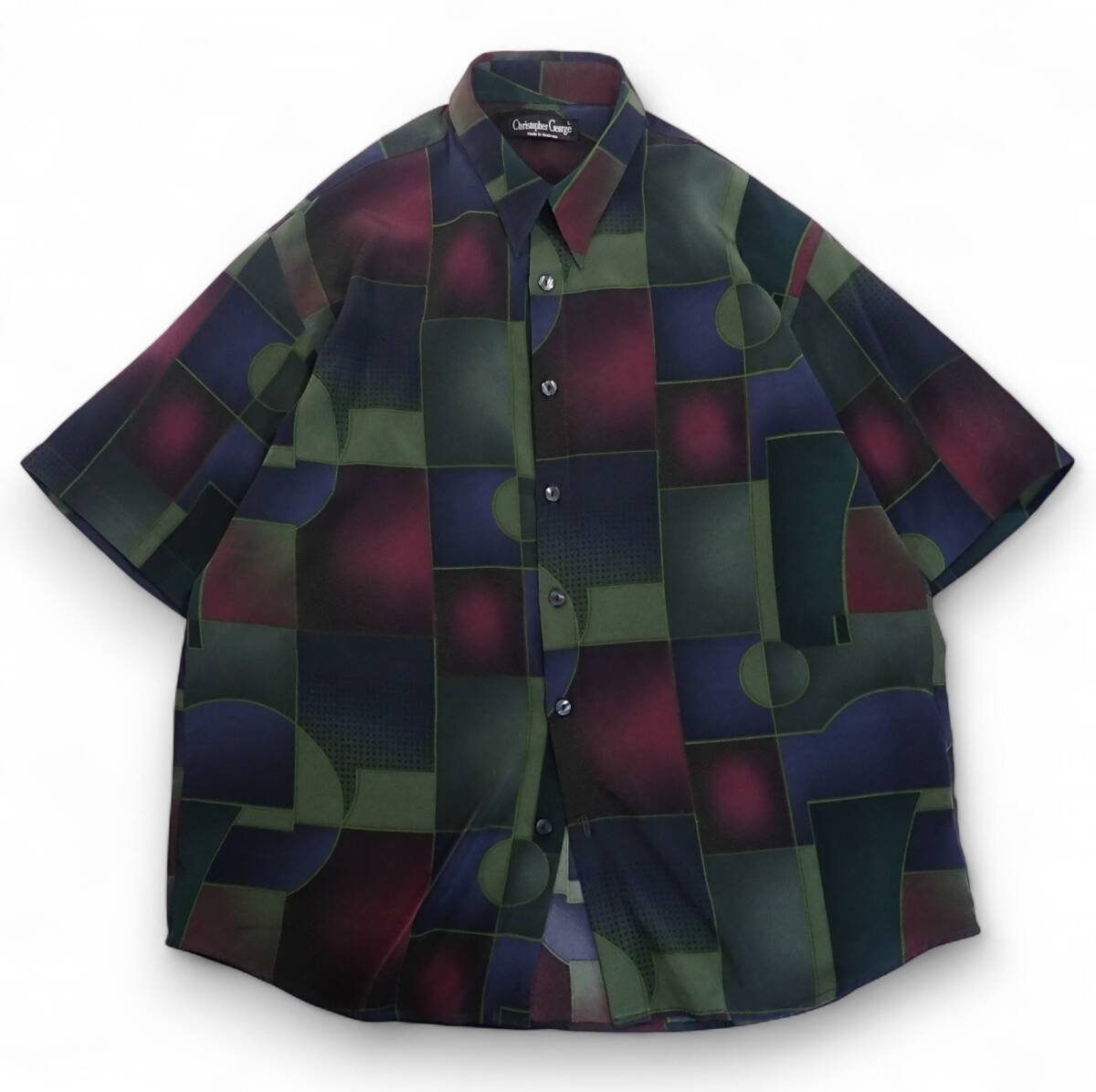 6723/美品 Christopher George 半袖シャツ L●雰囲気系◎ 幾何学模様 柄 デザイン アート Austraria製ビンテージ 古着●洗濯プレス済●古着