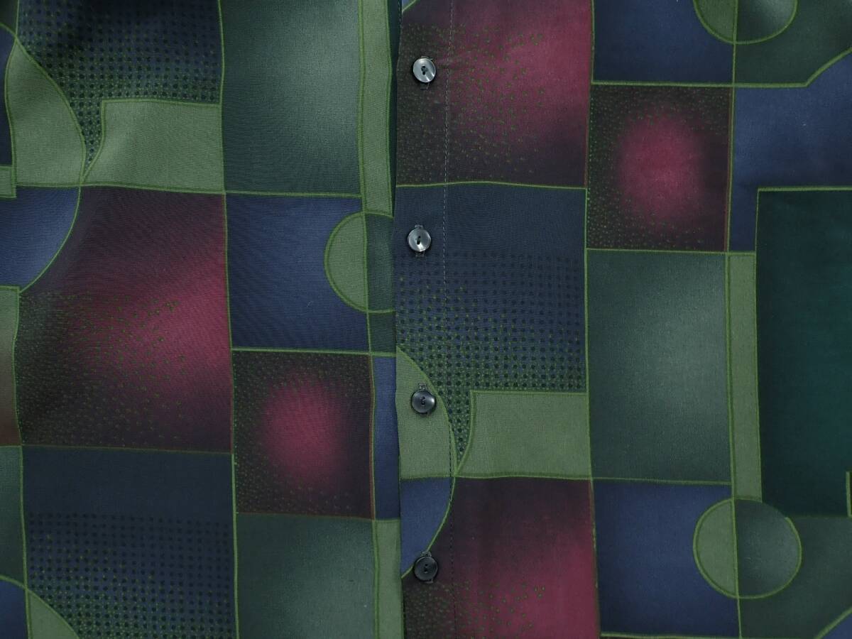 備考 Christopher Georgeの非常に雰囲気のあるグラデーションの入ったアート風幾何学模様プリント柄の半袖シャツです。 クリーニング、プレス済。