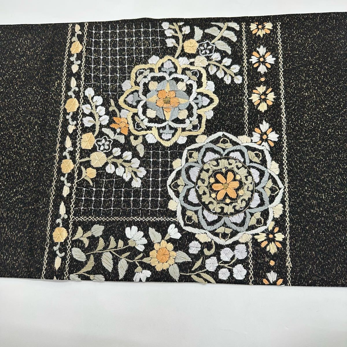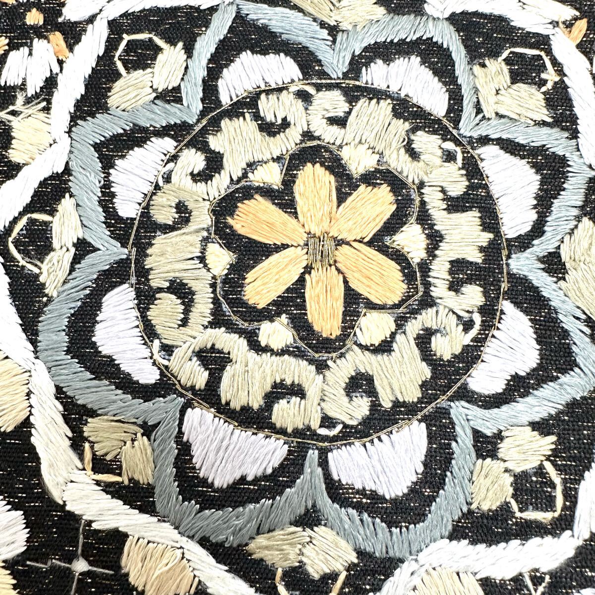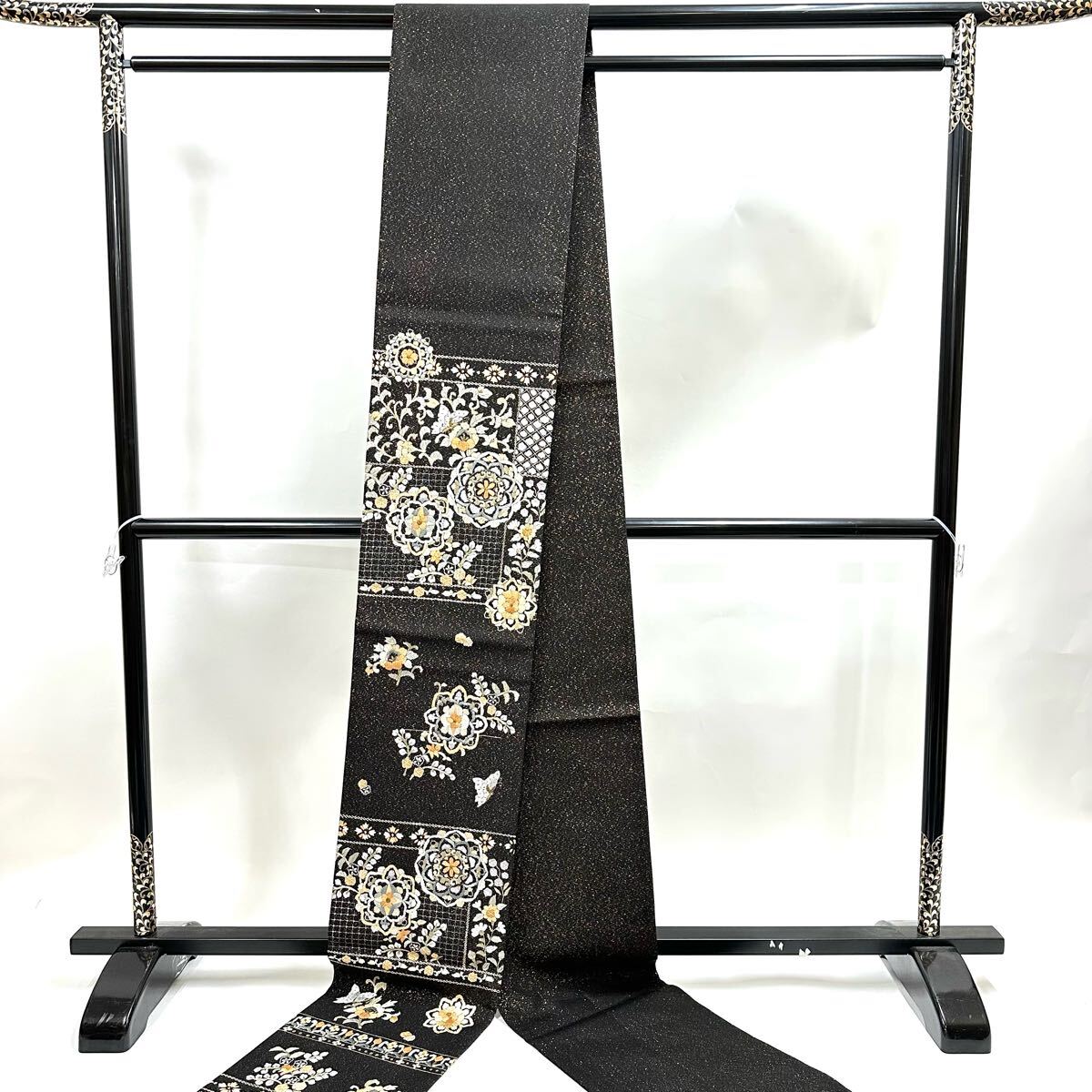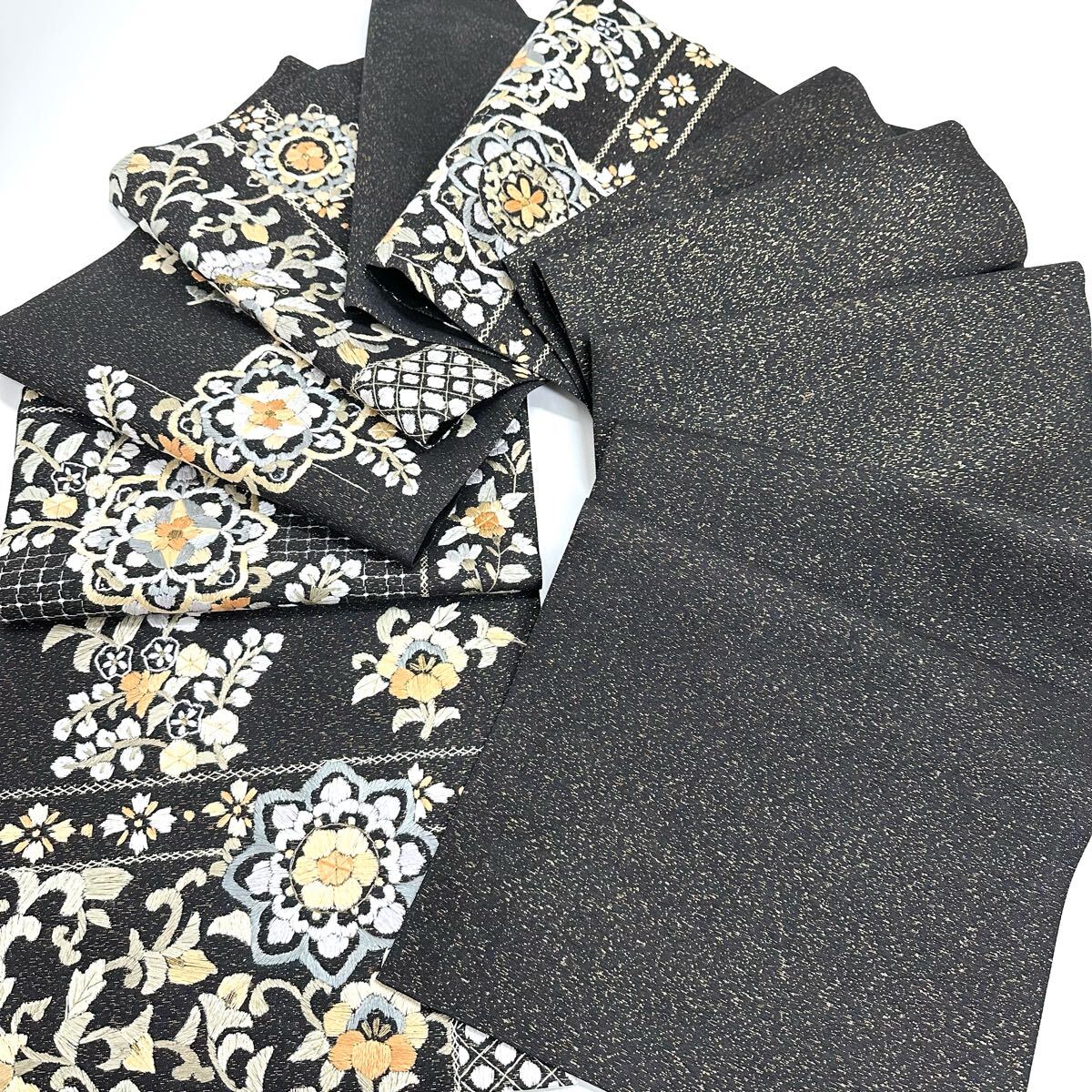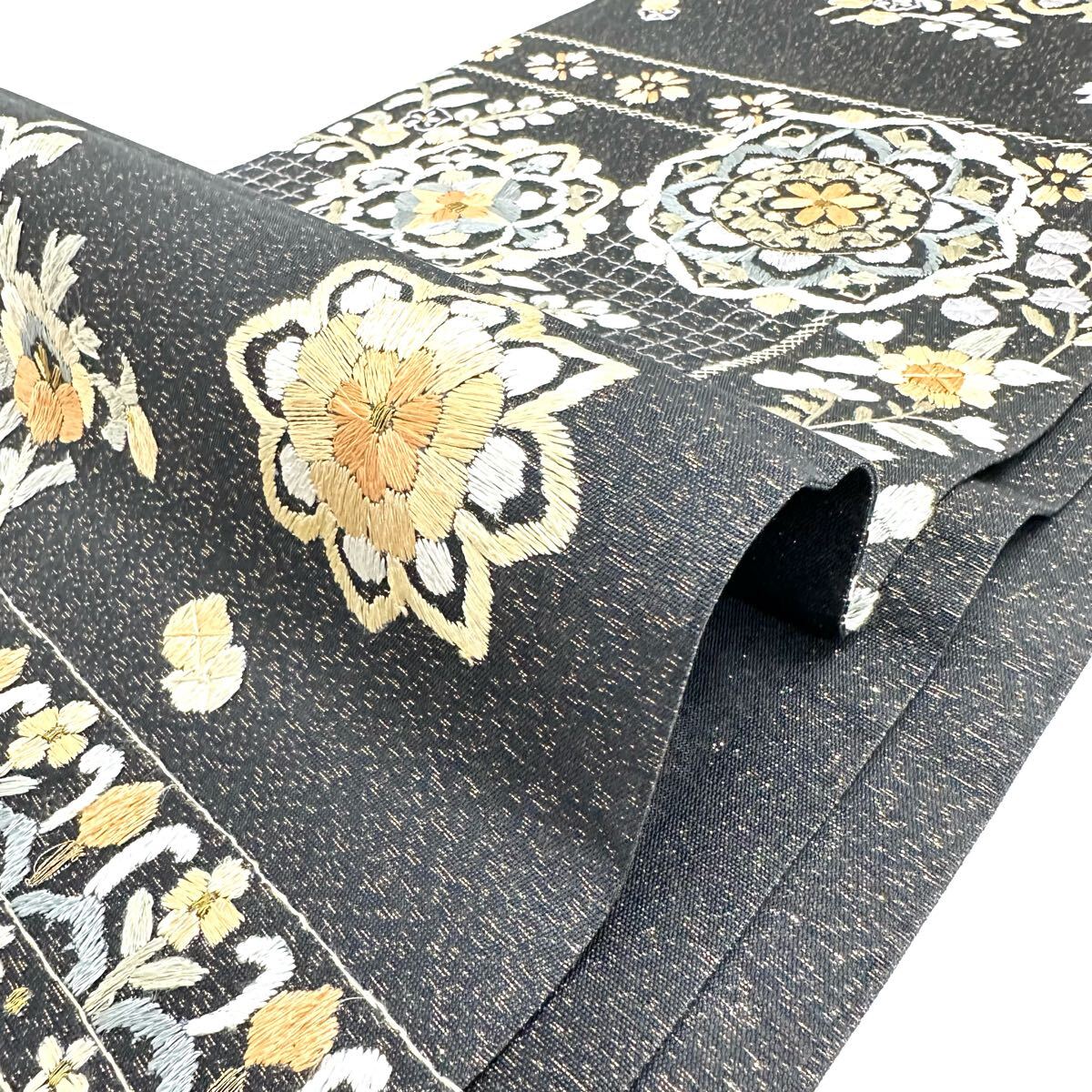 【七福】c581 逸品 高級品 正絹 袋帯 三通 華文 草花 蝶 金糸 銀糸 刺繍 豪華