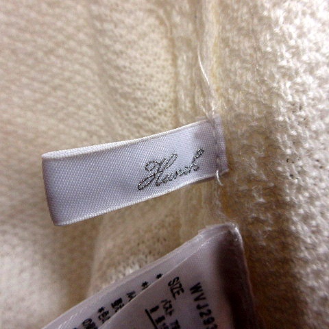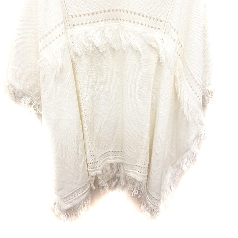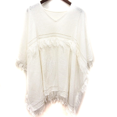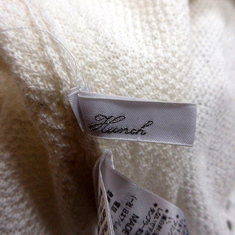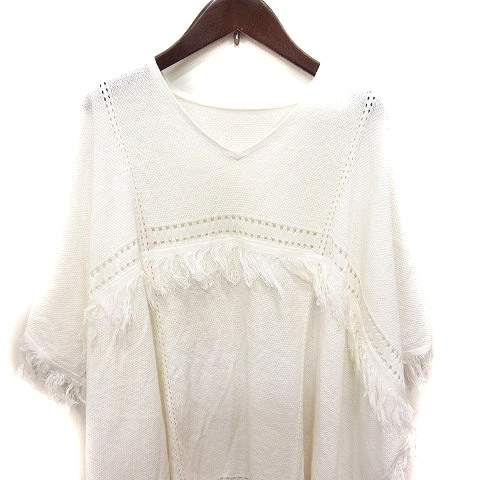 ランチ LuncH ニット カットソー 五分袖 フリンジ 麻 リネン M 白 ホワイト /RT ●RY レディース