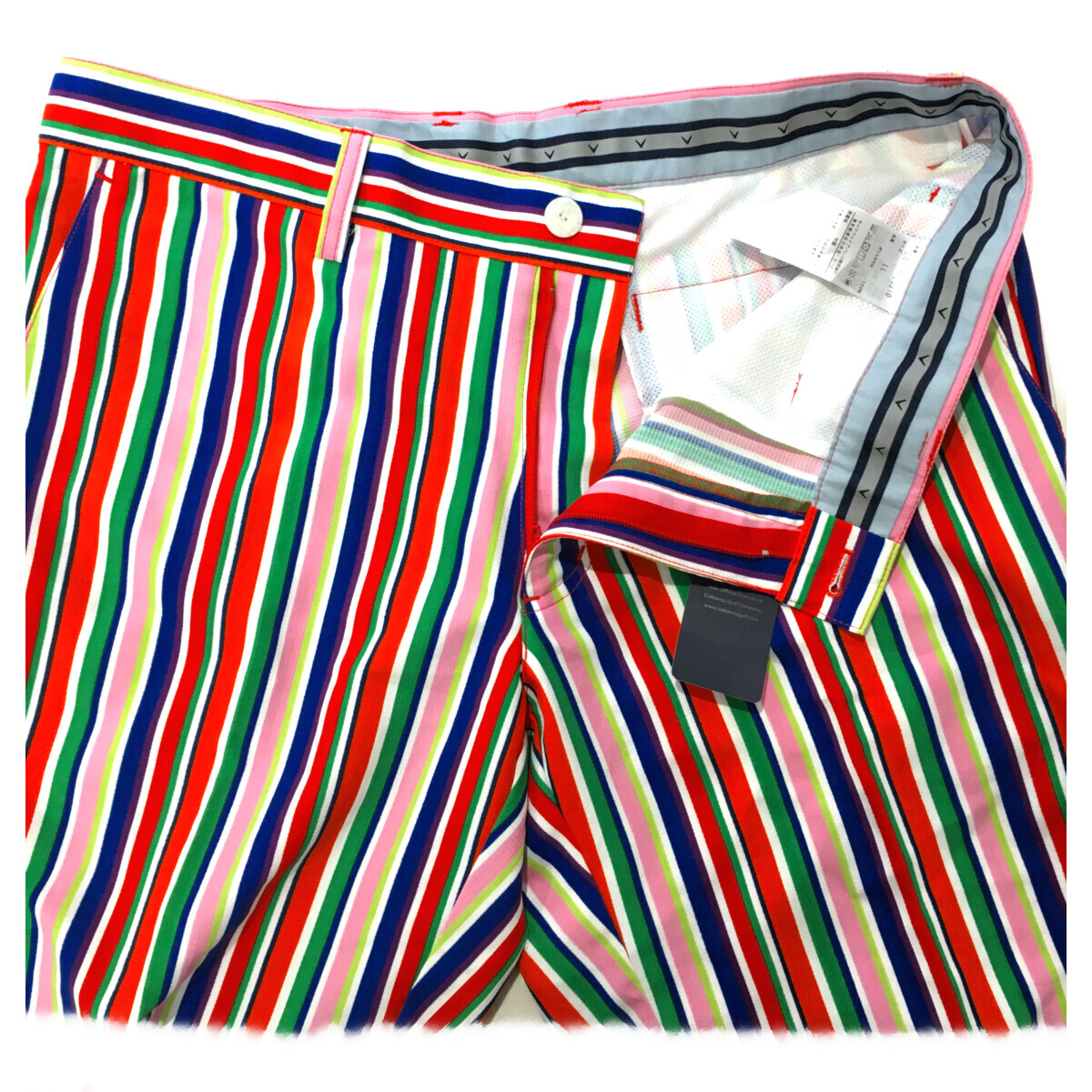 マルチカラーのストライプ柄がグリーン上で映えます