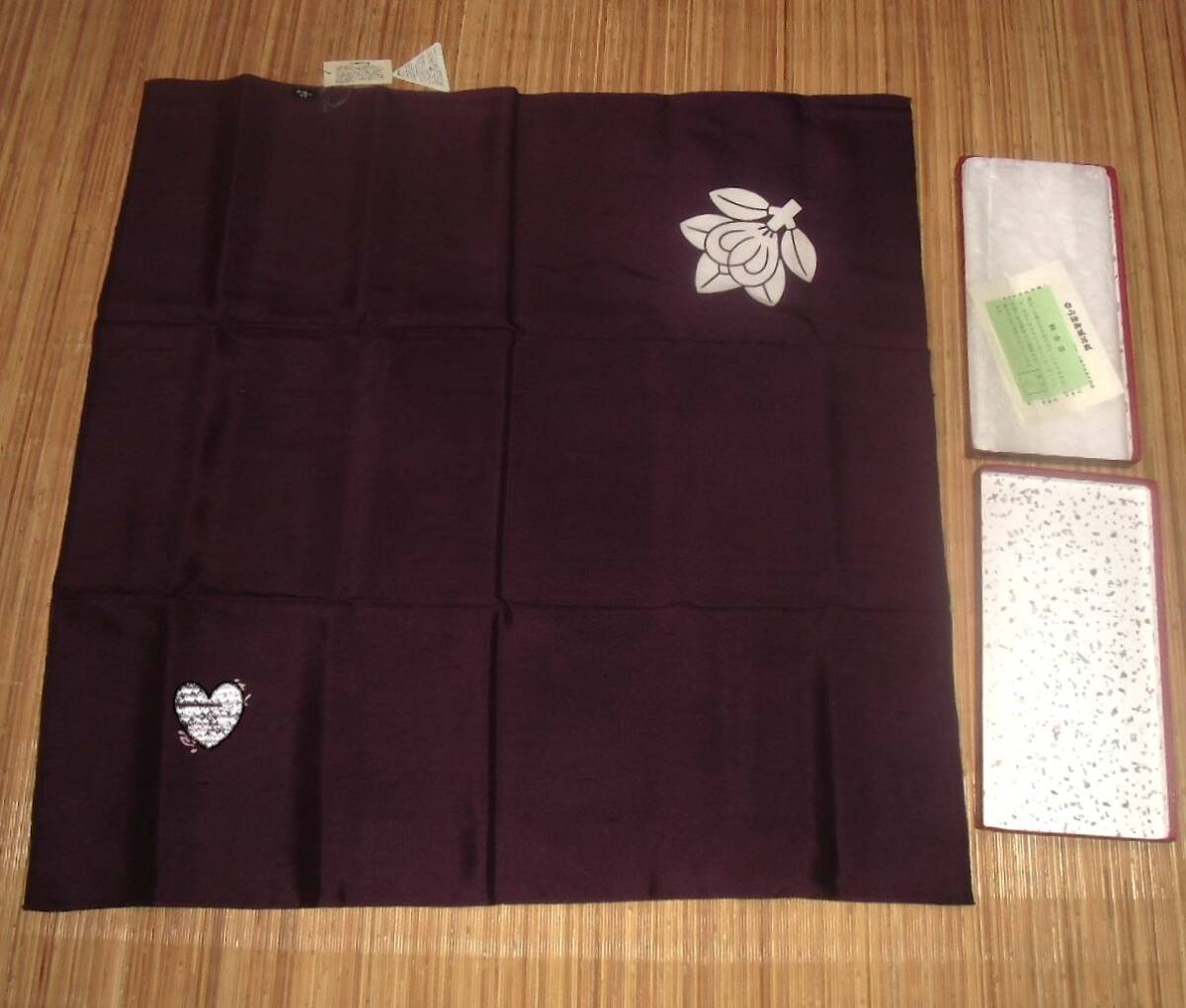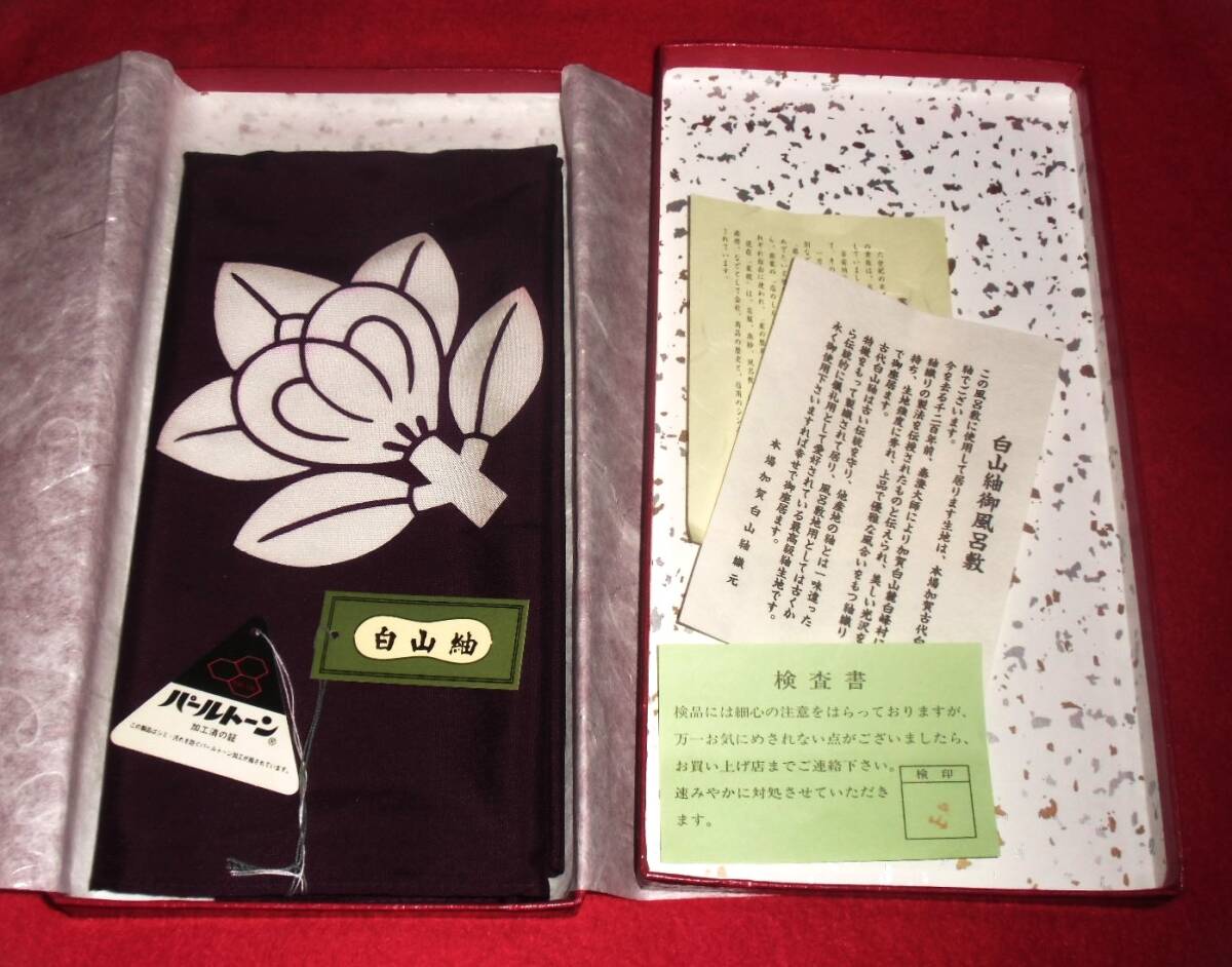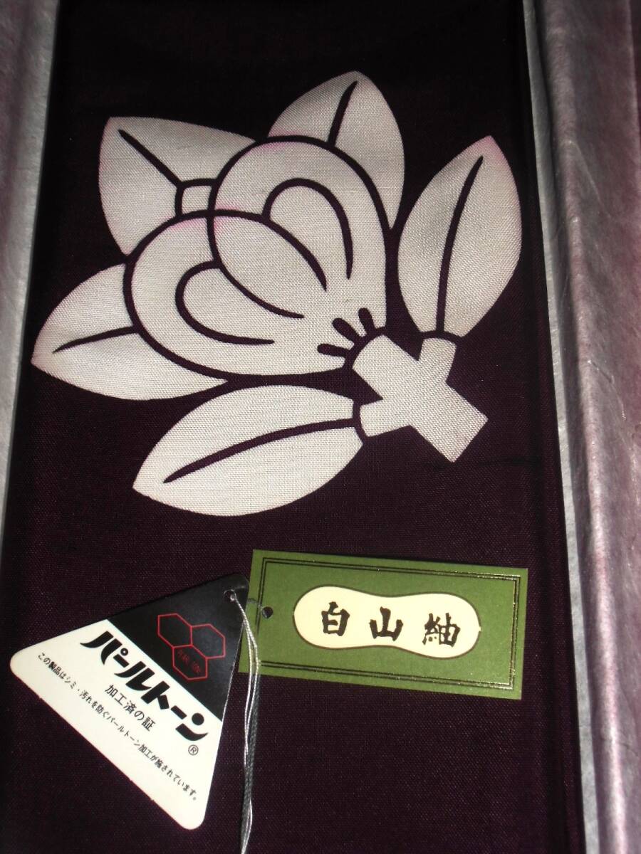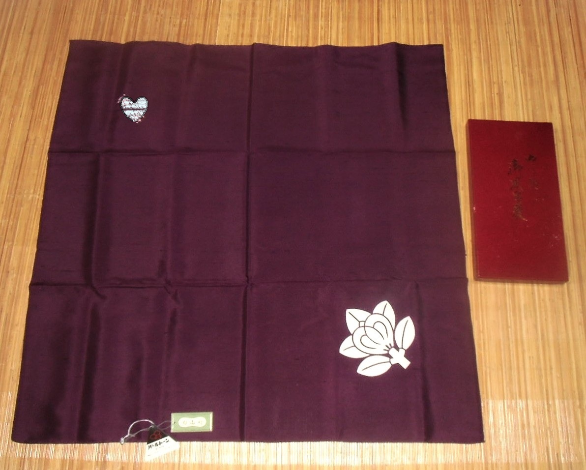 未使用 白山紬御風呂敷 正絹 橘 家紋入り 紫 約72cm 名入り 絹100% パールトーン加工 ふろしき