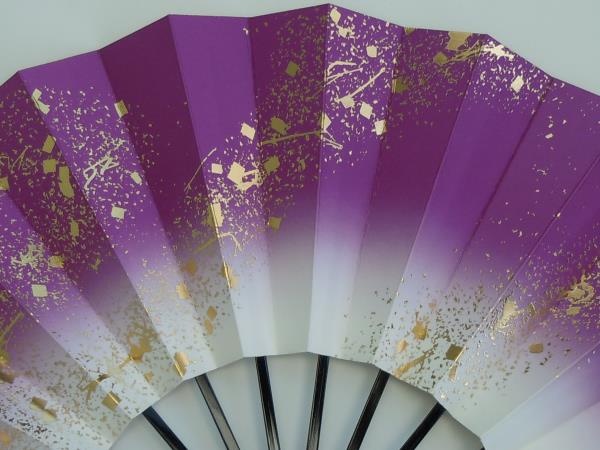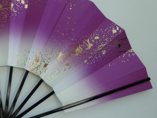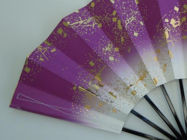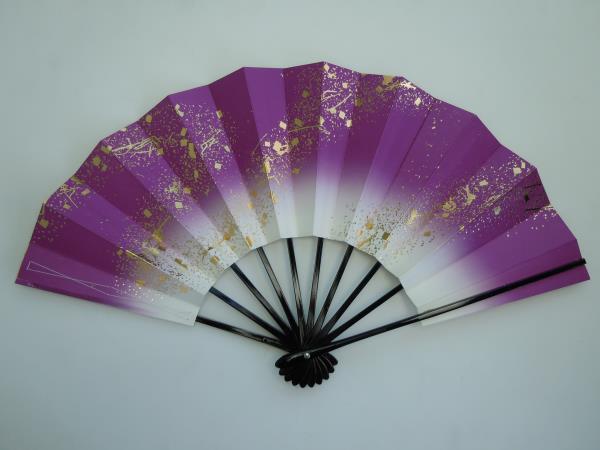 5235,舞扇子 日本舞踊 踊り用 流水 紫 扇骨 黒塗 京扇子 箱なし