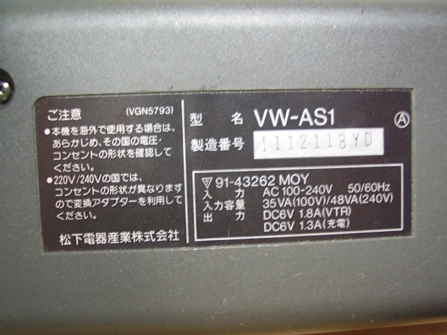 パナソニック ビデオカメラ用充電器VW-AS1 バッテリーパック1個付きジャンク