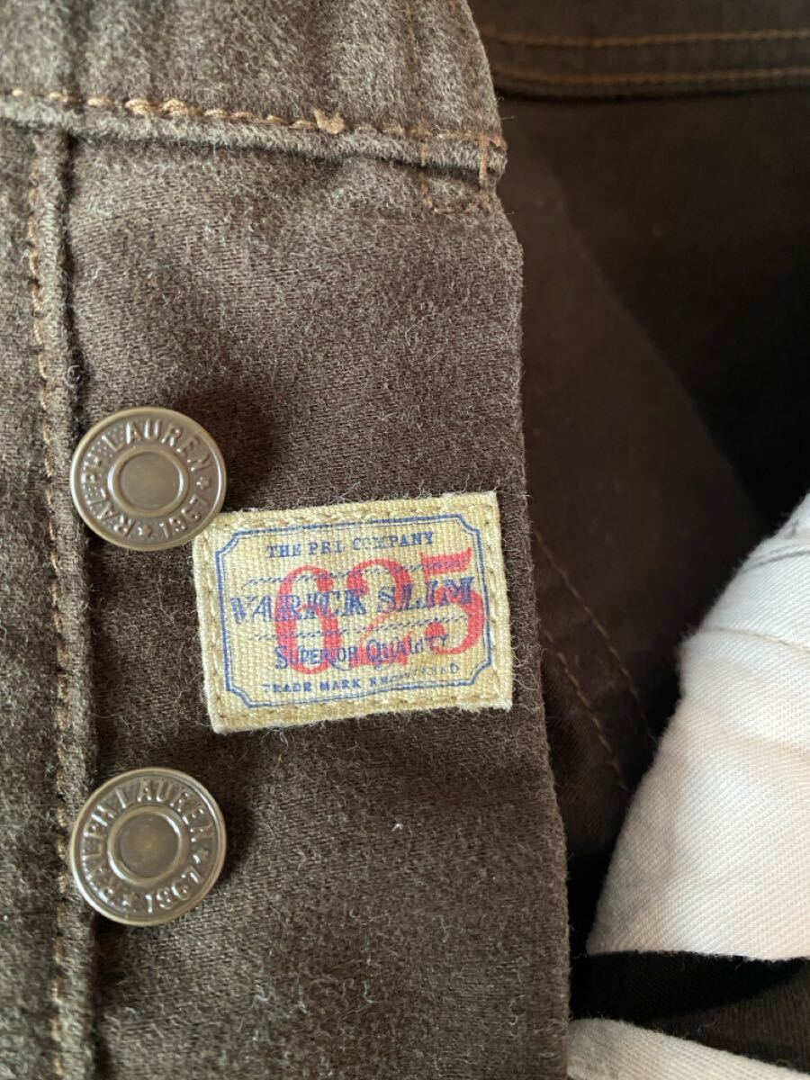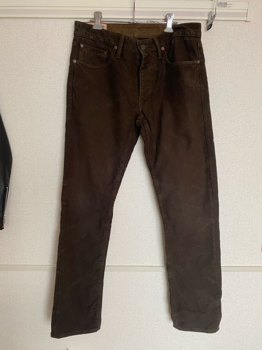 POLO RALPH LAUREN VARICK SLIM。色はブラウン。素材は綿100%、モールスキン。フロントはボタンフライ。
