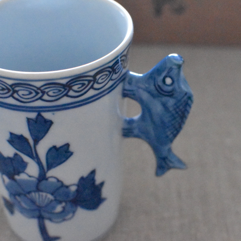 魚の持ち手が可愛らしいユニークな源右衛門窯のカップです。珍しいものではないでしょうか。