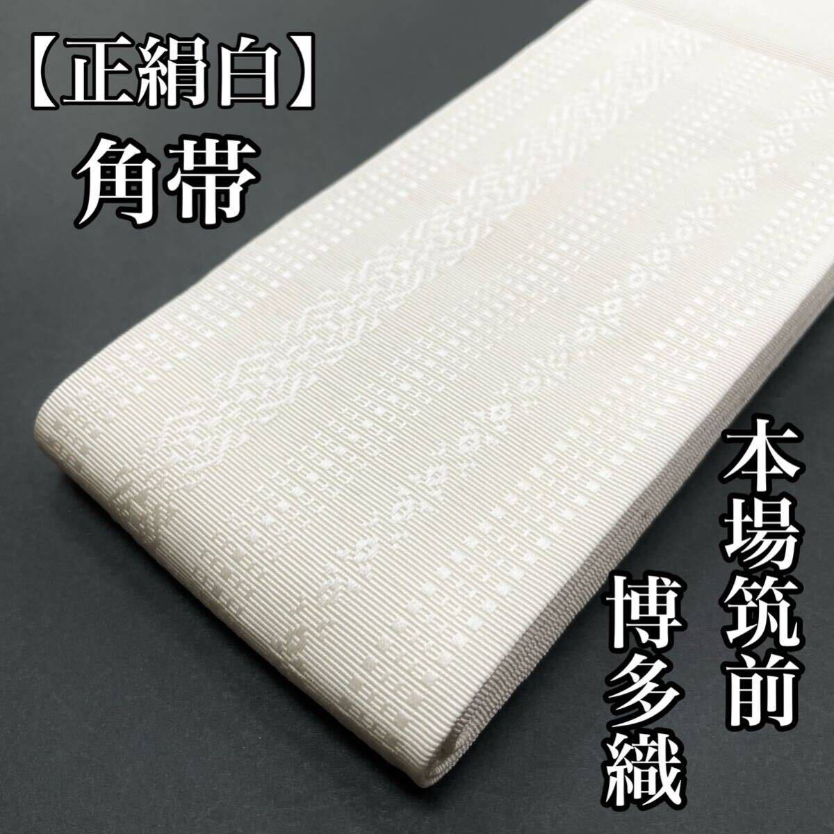 【白色】 粋帯 正絹角帯 本場筑前博多織 男性用 男用 男 絹 正絹 本筑 博多帯 男帯 着物用 紋付用 浴衣用 角帯 無地 献上 白 白色