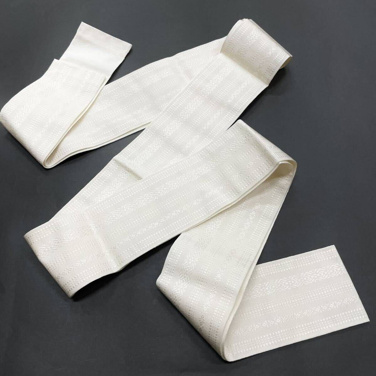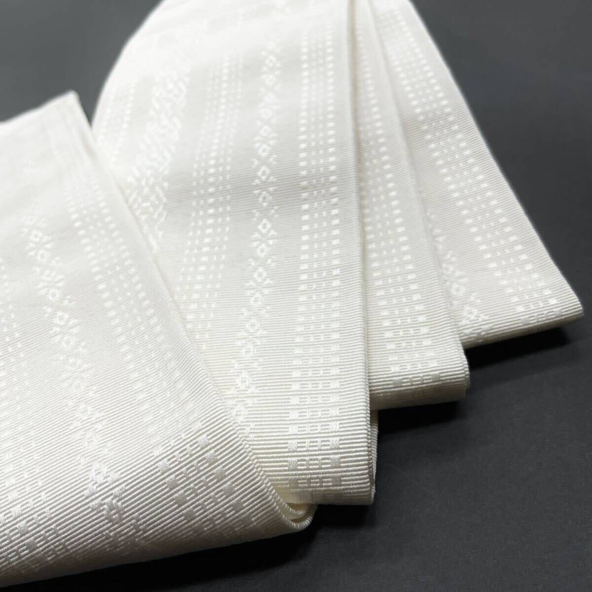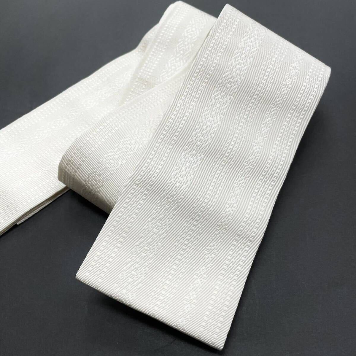 白色 正絹角帯 本場筑前博多織 男性用 男用 男 絹 正絹 本筑 博多帯 献上 お洒落用 モノトーン 浴衣用 角帯 献上柄 白 紋付き
