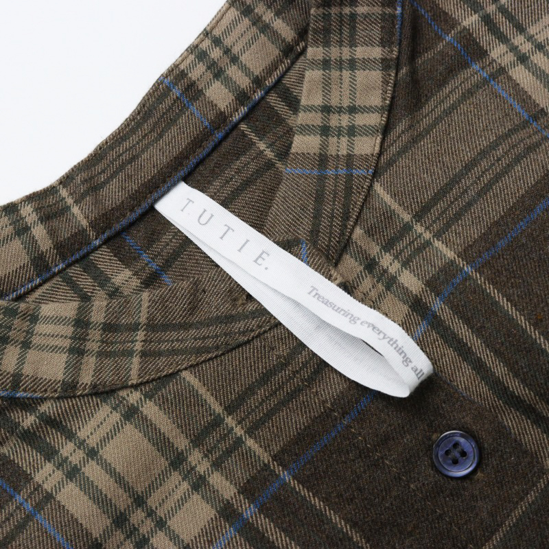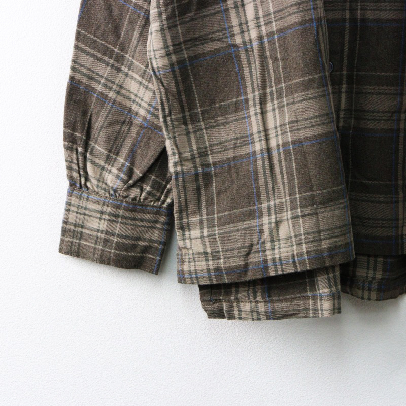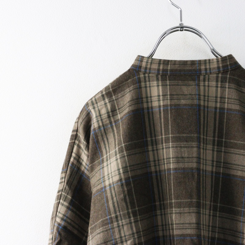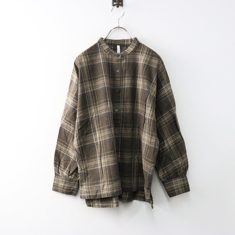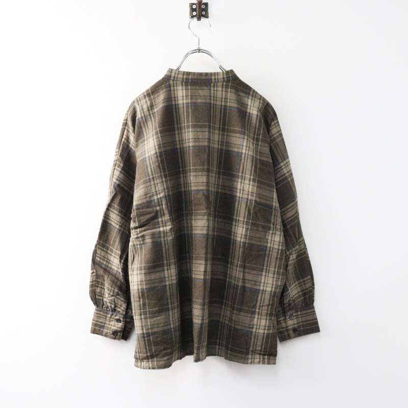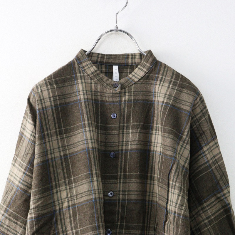 定価13200円 ツチエ TUTIE コットン チェック バンドカラードルマンスリーブシャツ カーキブラウン/シャツ トップス【2400014458862】