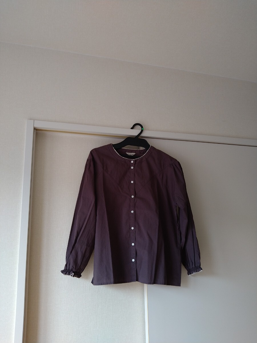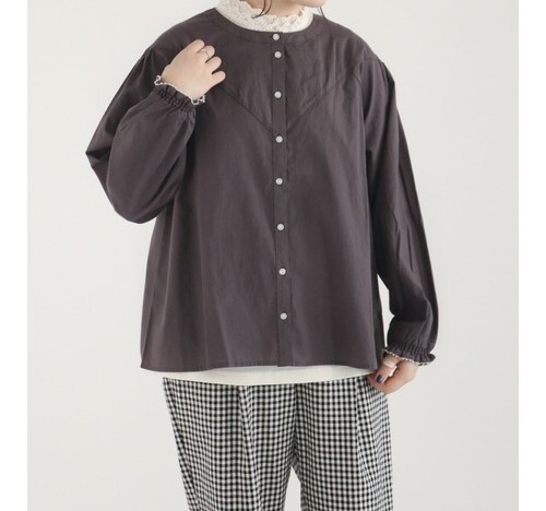 V字切り替えがシャープな印象をプラスするブラウス。さりげなく施された配色レースの縁取りも愛らしい印象を与えてくれます。
