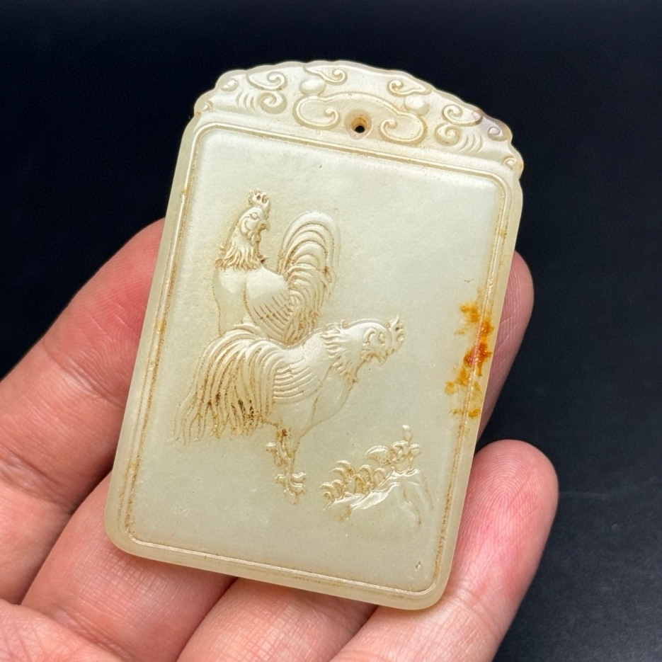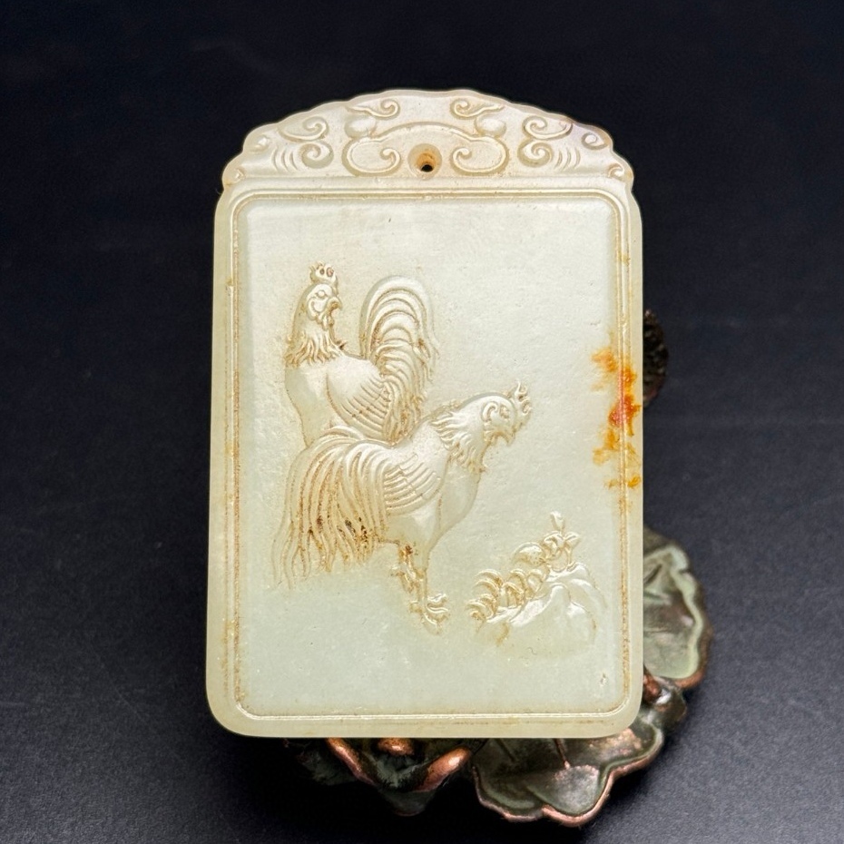 唐物 清 玉彫 和田玉 鷄 吉祥如意 彫刻精美 玉質温潤 包漿醇厚 極細工 中国古玩 骨董品 古美味 D66