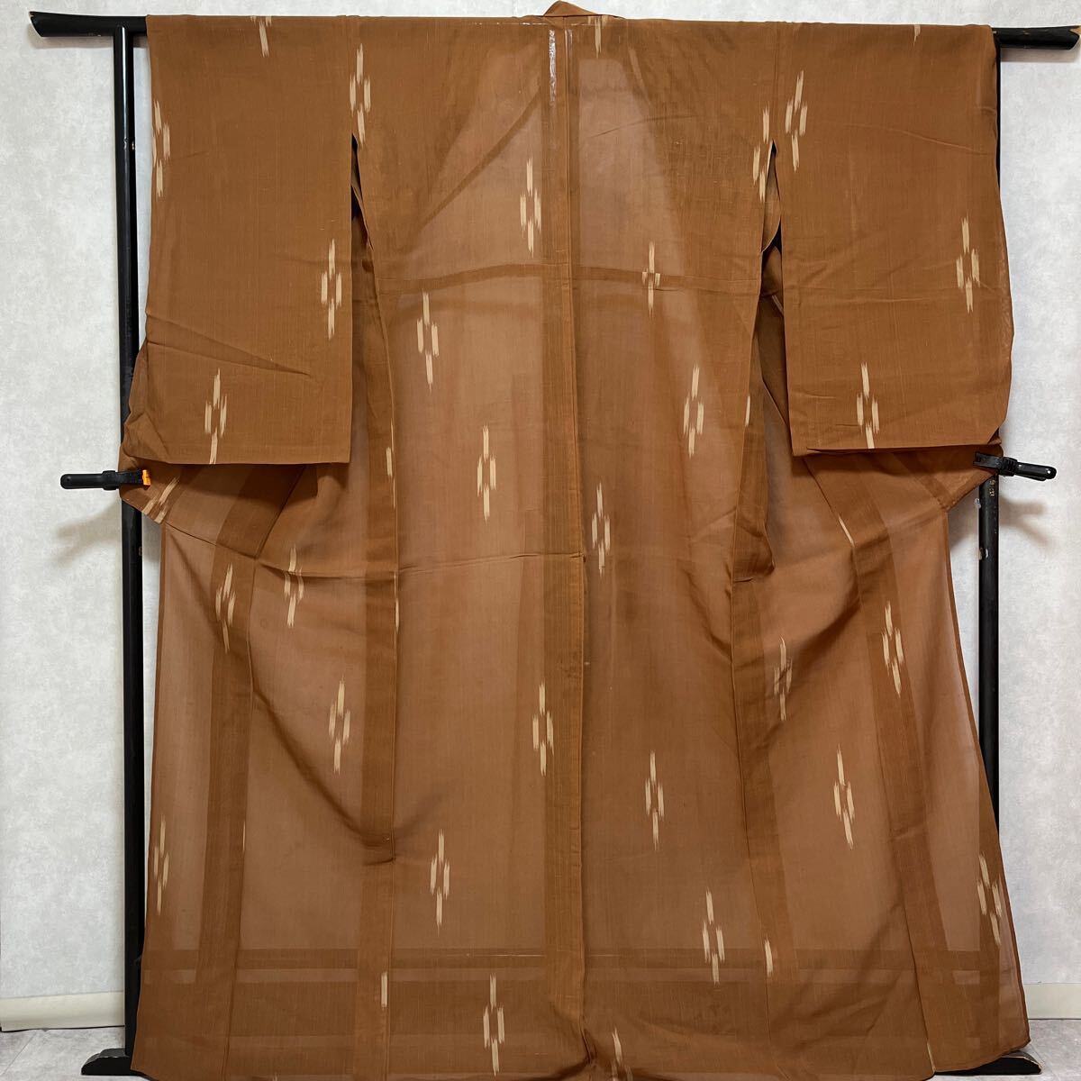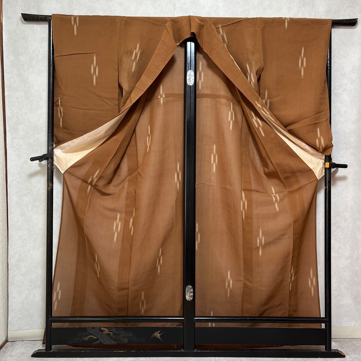 アンティーク 単衣 絽 紗 夏物 着物 トール 茶色 正絹 昭和レトロ 大正ロマン モダン 和洋折衷コーデ リメイク か09-6k