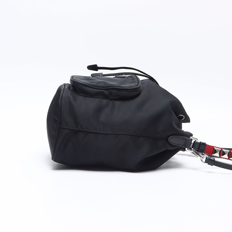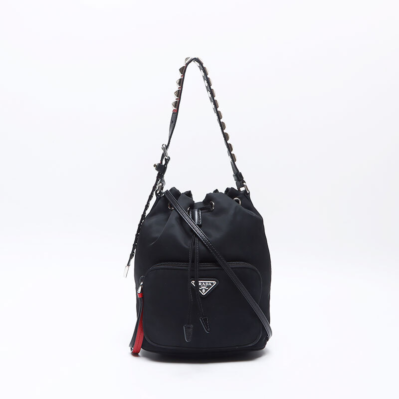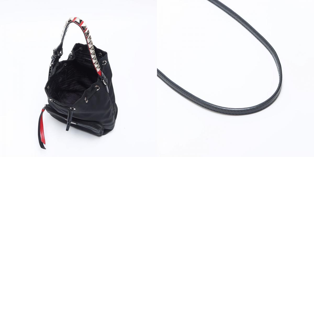 プラダ PRADA ショルダーバッグ トライアングルロゴ ナイロン スタッズ ミニ 巾着 スタッズ ブラック