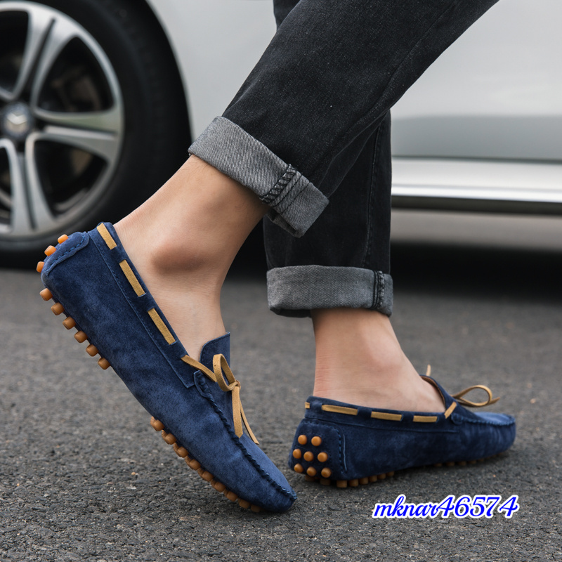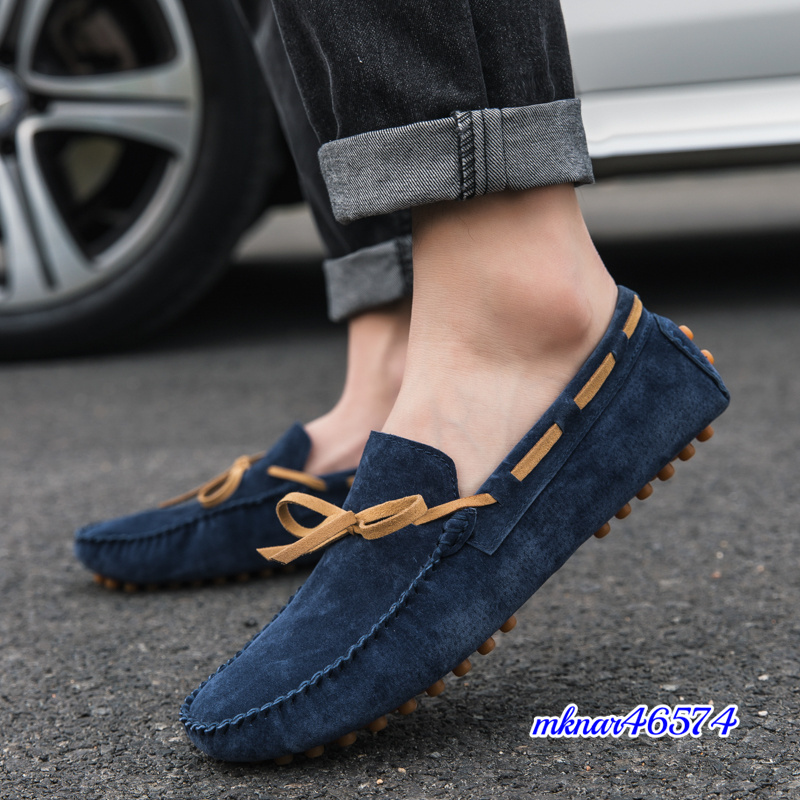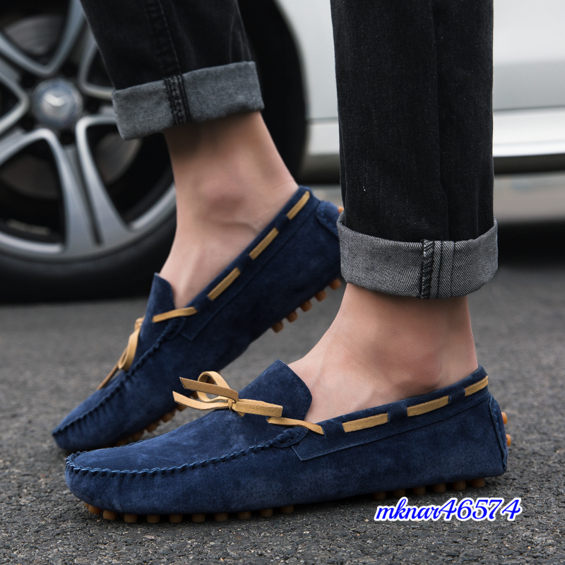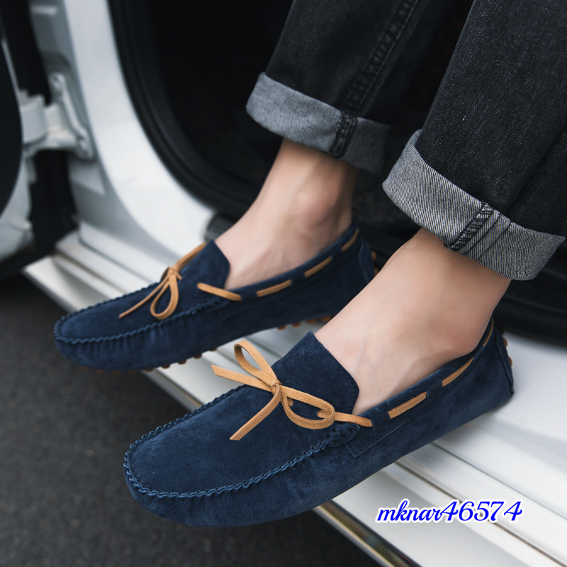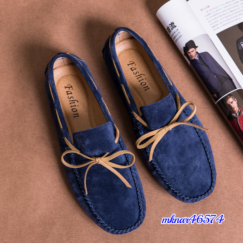 \SALE★新品/ローファー スリッポンメンズ 本革 ドライビングシューズ 牛革 スエード革 大きいサイズ有24cm~27cm選択 ブルー