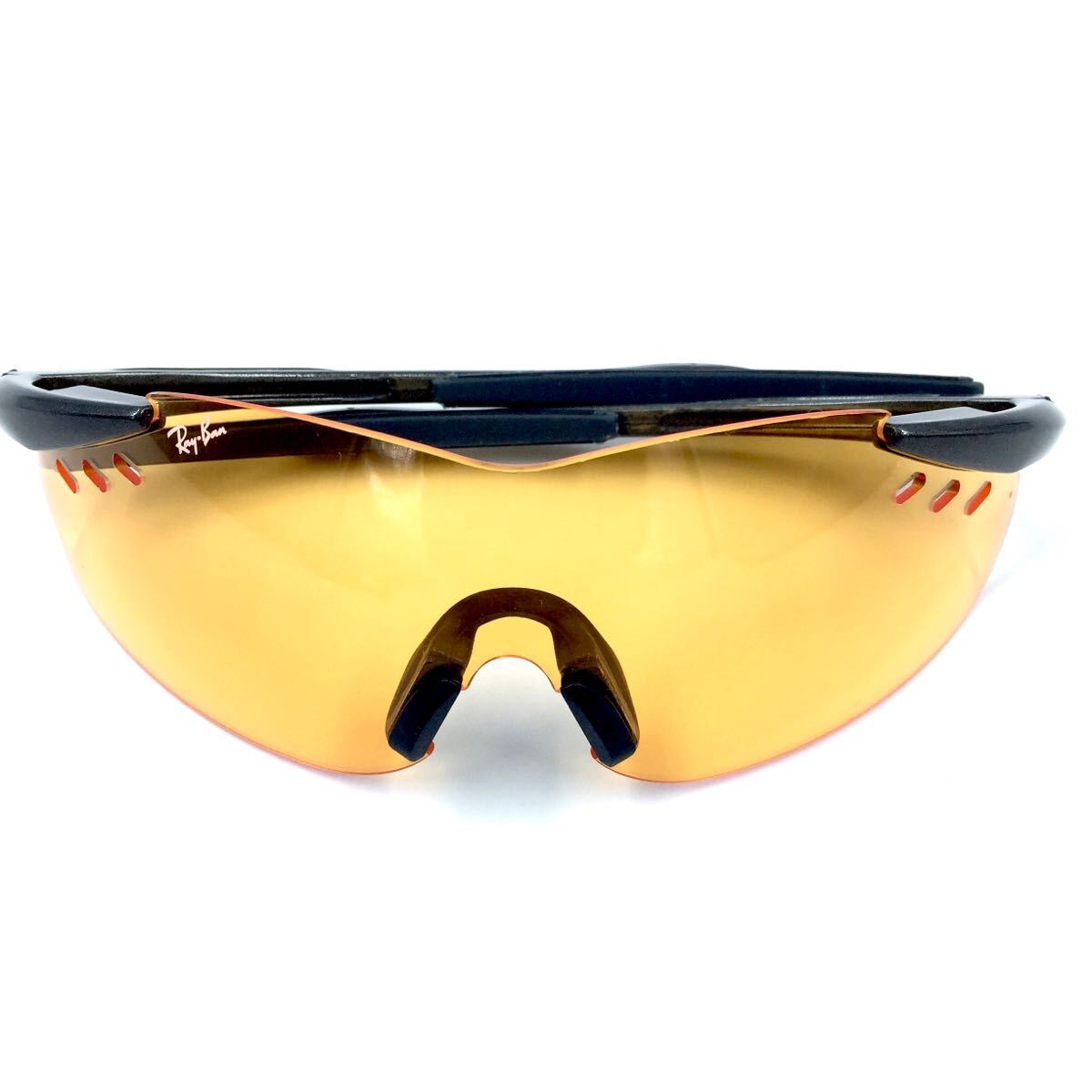 独特のオレンジカラーレンズブラウングレーの半透明フレームが特徴的で、当時のレイバンらしい遊び心のあるデザイン。