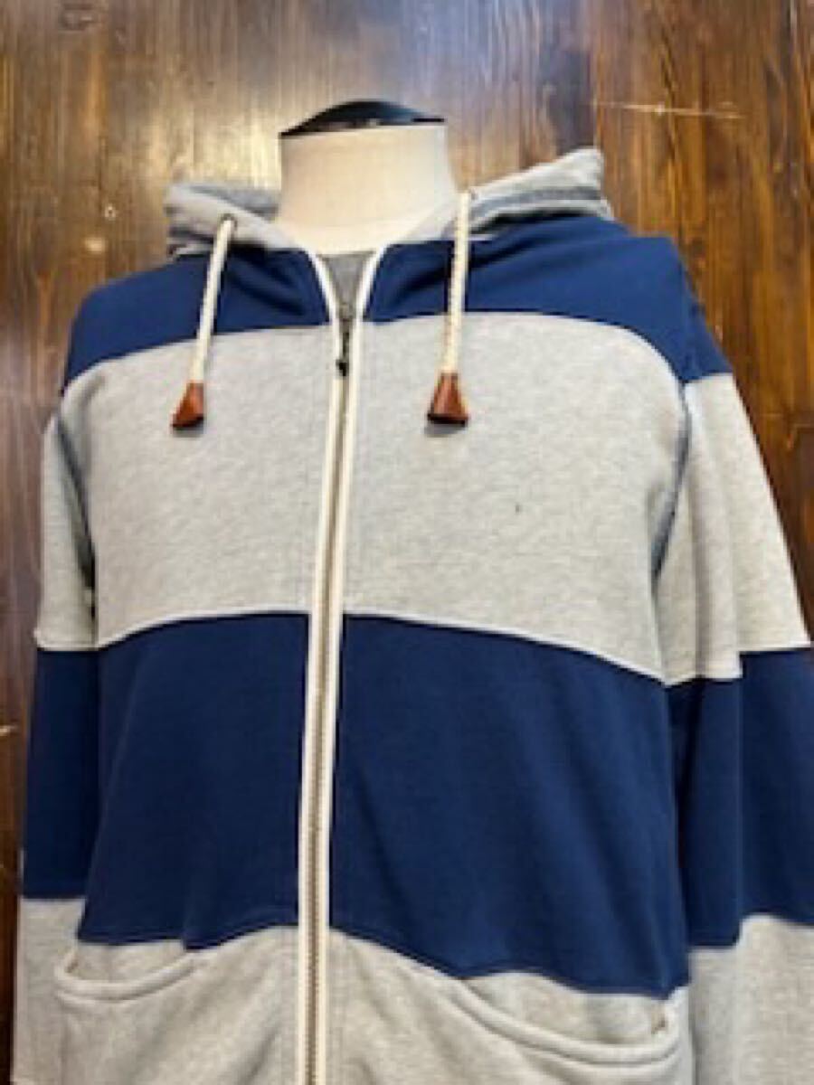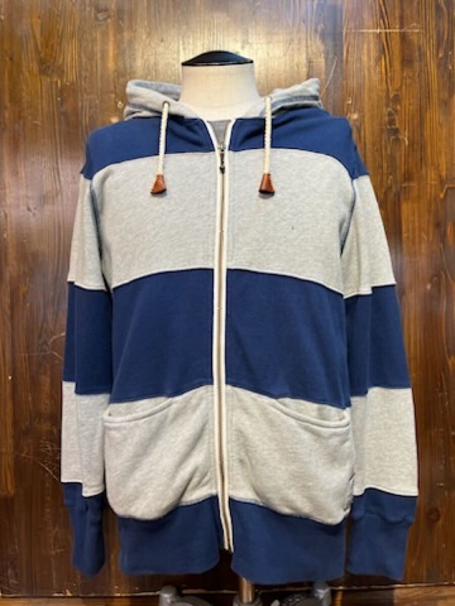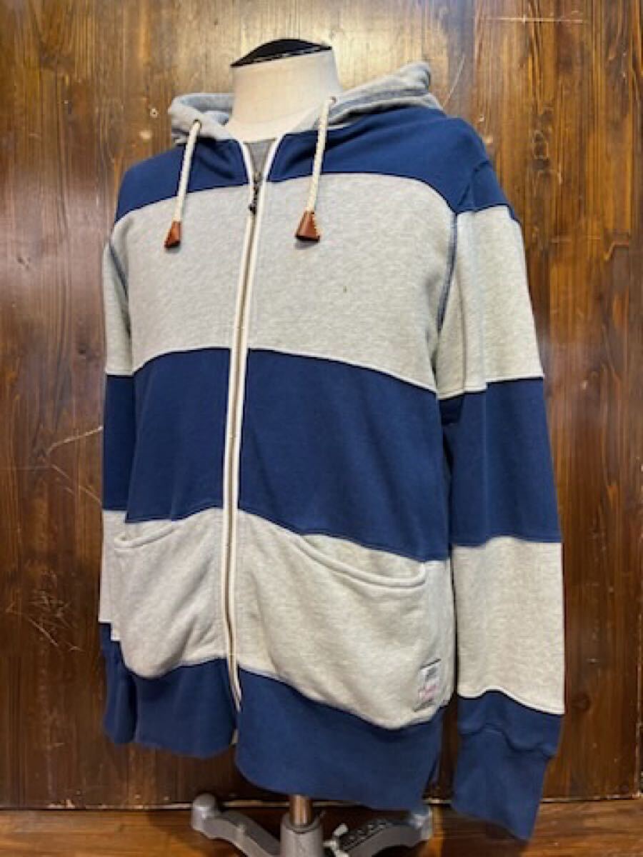 L475 メンズ パーカー MAGIC NUMBER マジックナンバー グレー ネイビー ボーダー ジップアップ フーディー サーフ ストリート L (8)