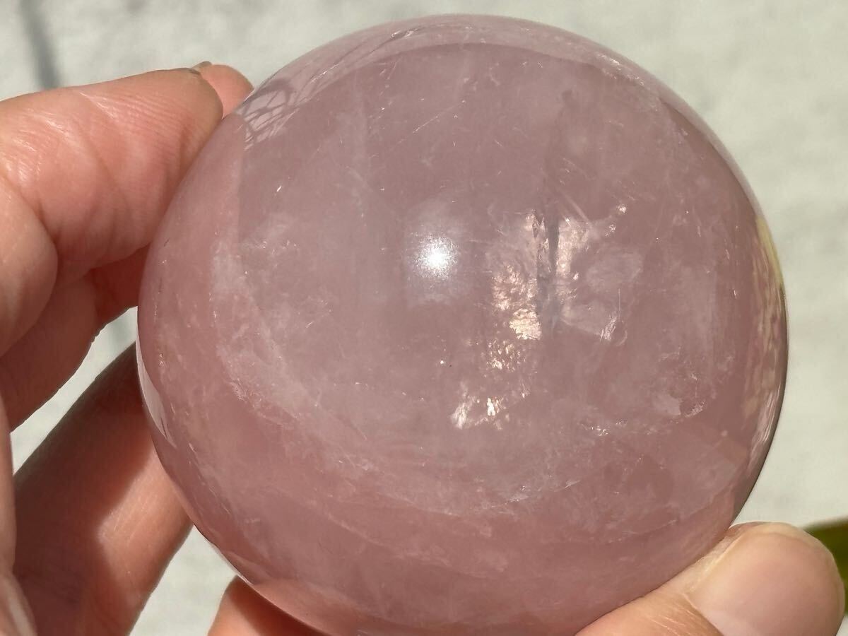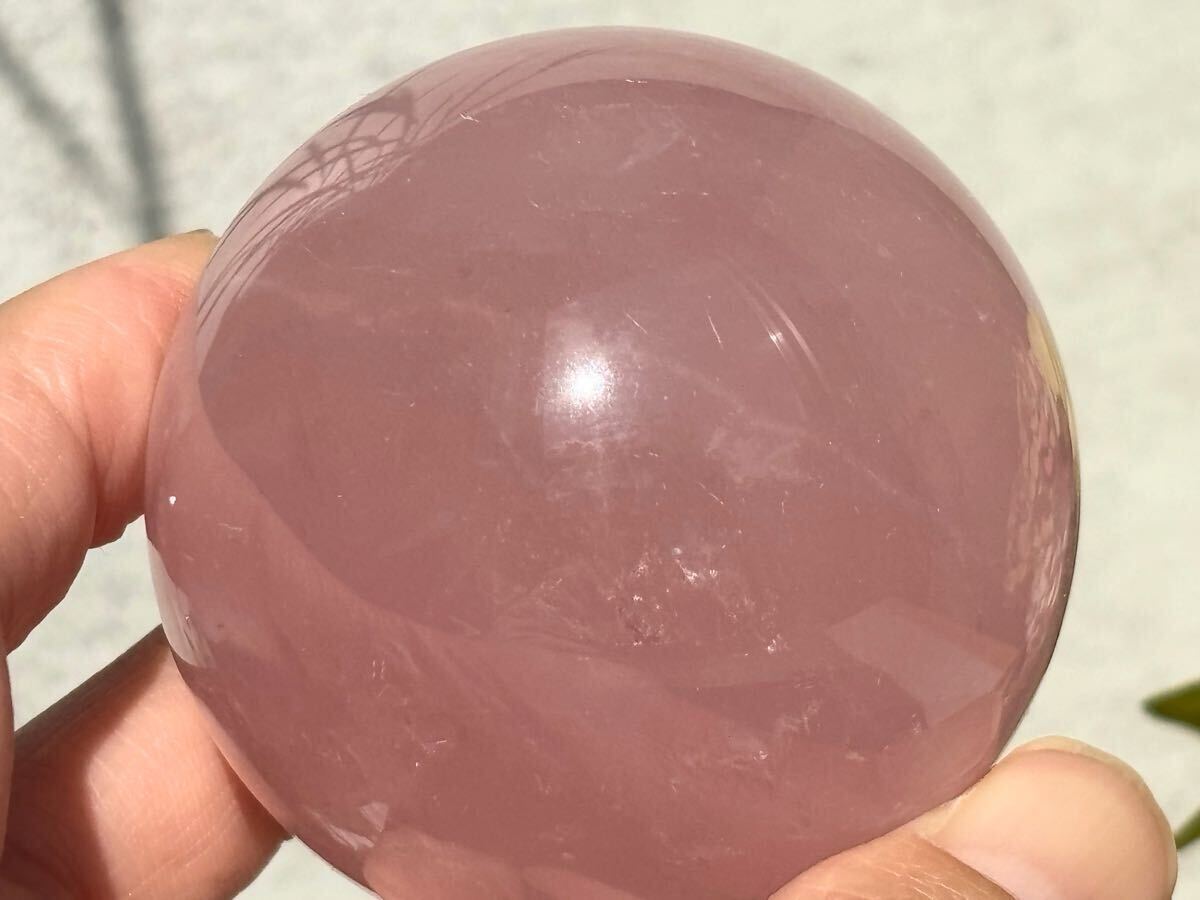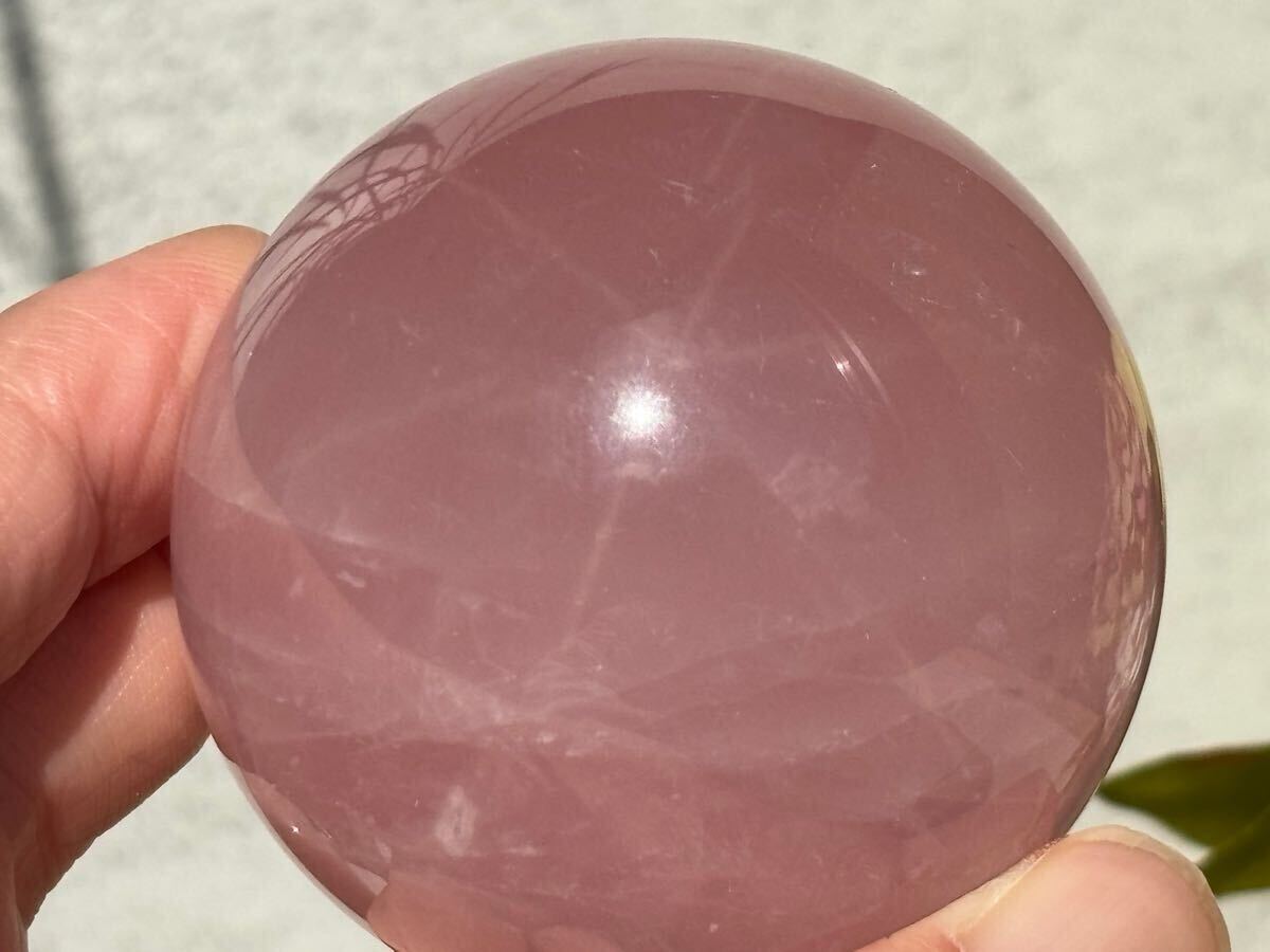 光を浴びるだけで、6条のスターが浮かび上がるローズクォーツのスフィア。