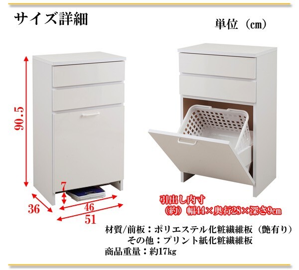 ◇材質:天板・前板:ポリエステル化粧繊維板、その他:プリント紙化粧繊維板、バスケット:ポリプロピレン