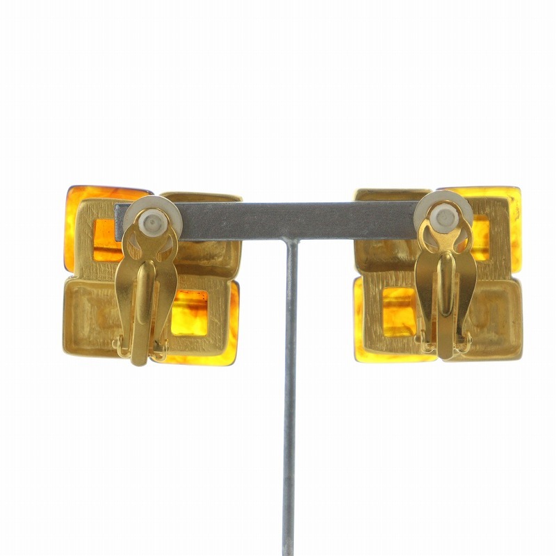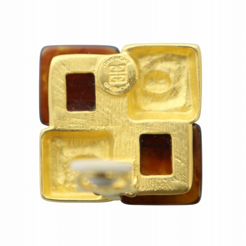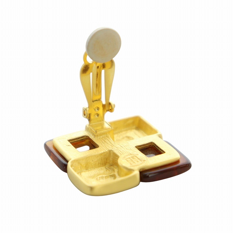 ジバンシィ GIVENCHY ヴィンテージ イヤリング アクセサリー 両耳用 クリップ式 4Gロゴ スクエア ゴールドカラー 金色 レディース