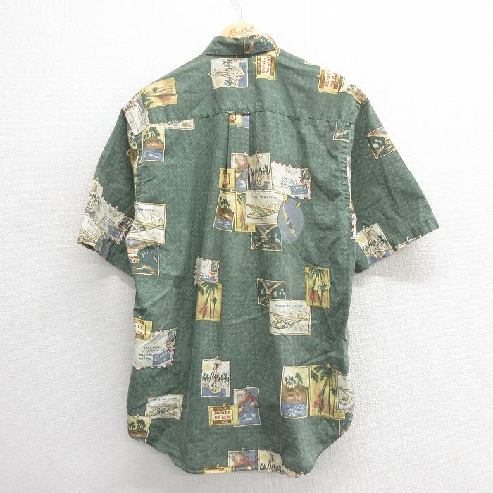 【商品名】 XL★古着 ノーティカ 半袖 ブランド シャツ メンズ 90年代 90s 飛行機 コットン ボタンダウン 緑【spe】