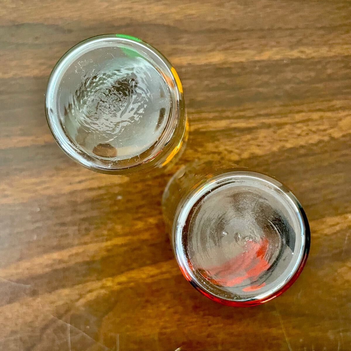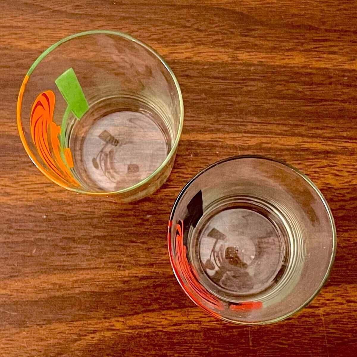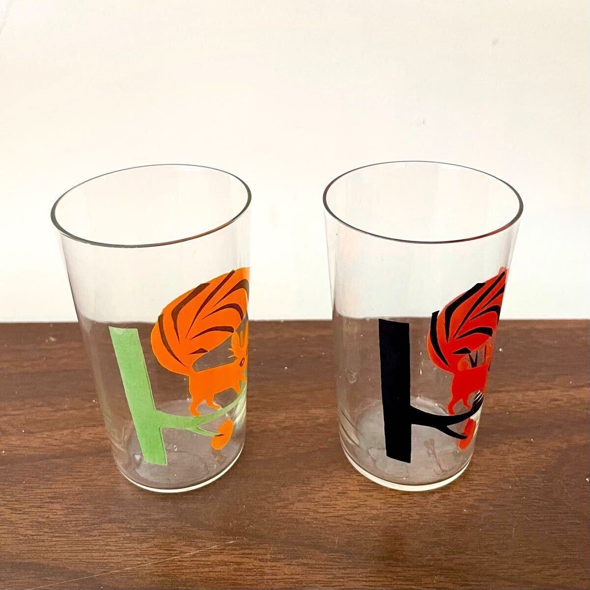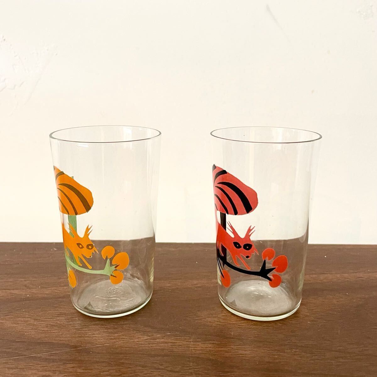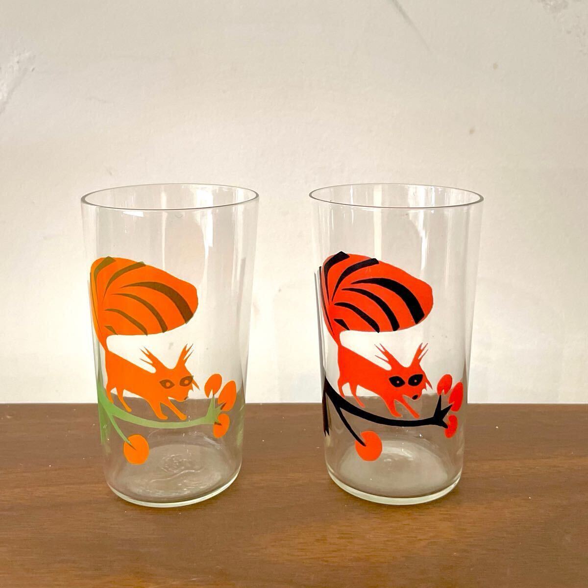 北欧ヴィンテージ 薄張りグラス アニマル柄ガラスコップ 2点 レッド オレンジ 4 レトロ喫茶店 什器 キッチン インテリア 動物 木の実になります。