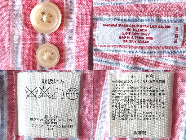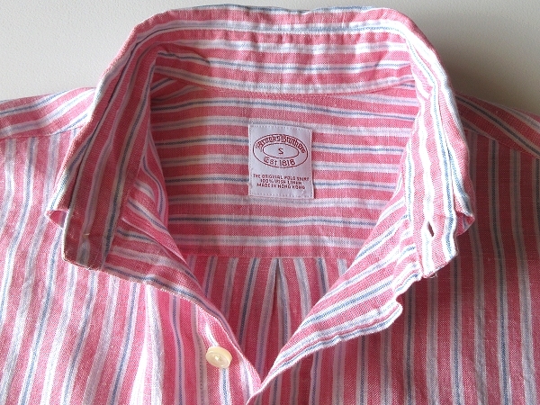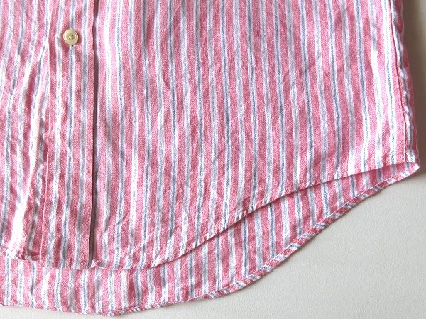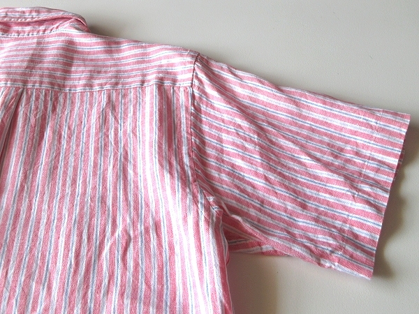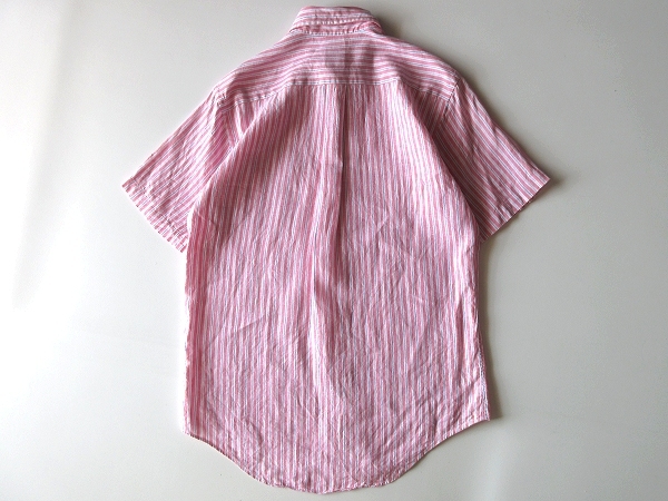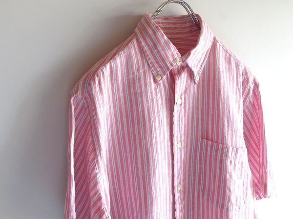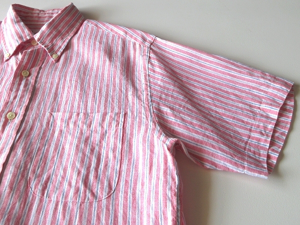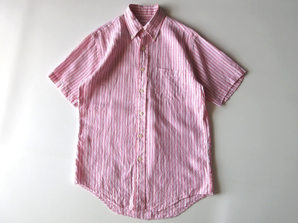 90s-00sビンテージ Brooks Brothers ブルックスブラザーズ 半袖 アイリッシュリネン ストライプ シャツ BDシャツ S ピンクレッド ネコポス