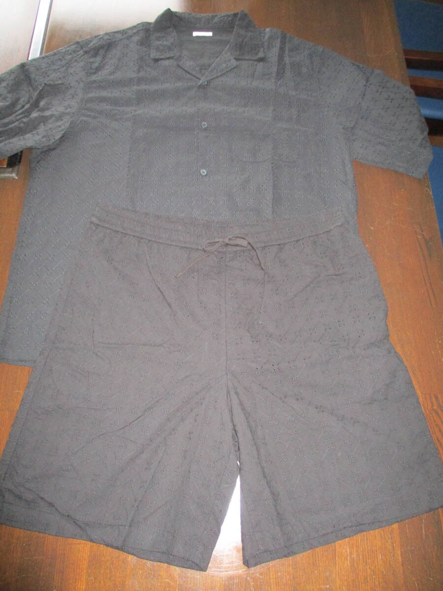 | GU ジーユー 涼し気レース素材 半袖オープンカラーシャツ&ショーツのセットアップ 1回洗濯のみ試着程度 サイズXL | |