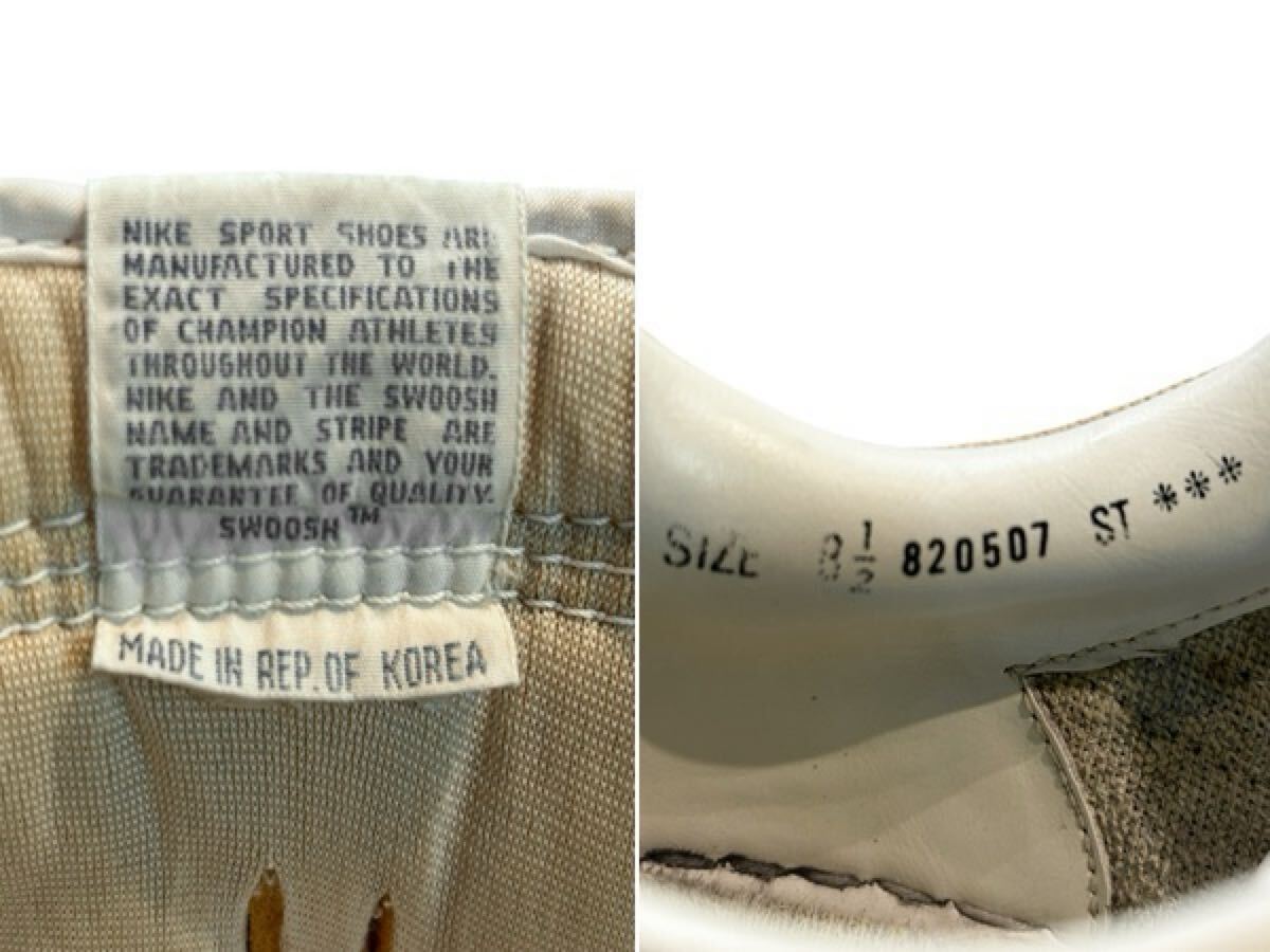 ビンテージスニーカーによく見られる経年によるアンクル部分内側割れはなく、製造番号やサイズのプリントも比較的きれいに残っております。