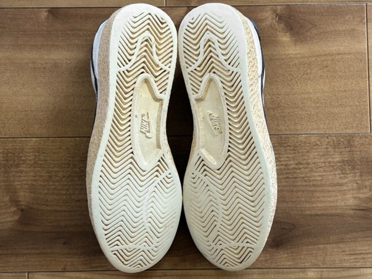 ミッドソール、アウトソール共に製造時よりは硬化が見られますが完全な硬化ではなく弾力性は残っております。