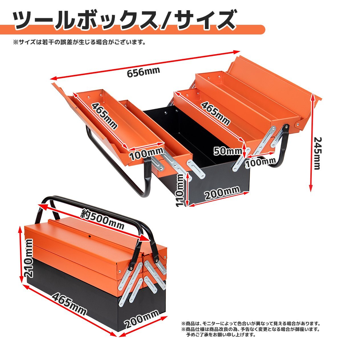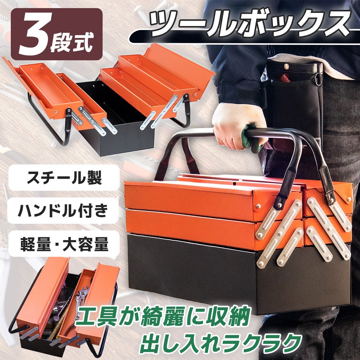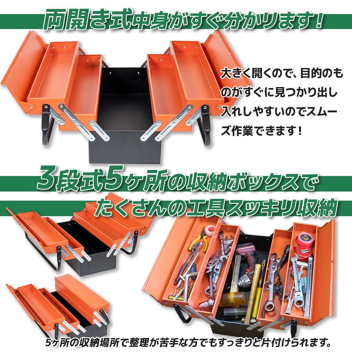 【送料無料】ハンドル付 両開き式 工具箱 3段 ツールボックス 収納ボックス 両開き 工具ボックス 道具箱 三段 DIY