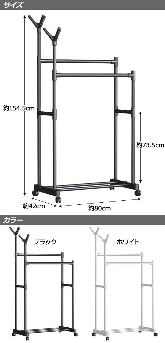 サイズ/タイプ:ダブルハンガータイプ ポール付き キャスター付き