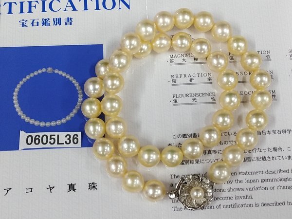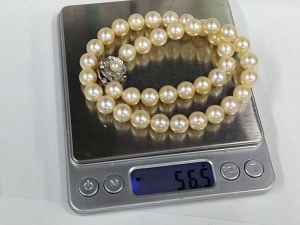 0605L36 本真珠 美品 特大玉 あこや ネックレス 宝石鑑別書付 約57g