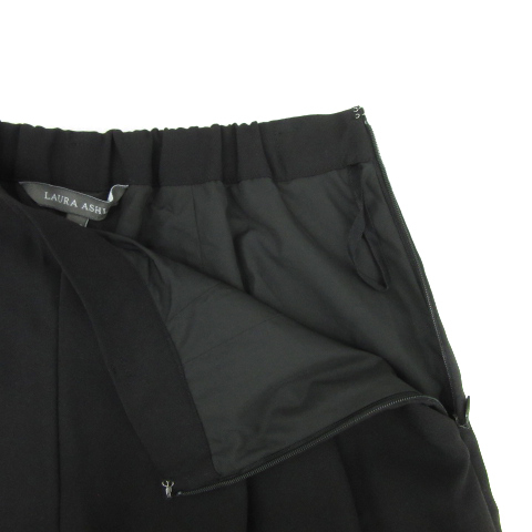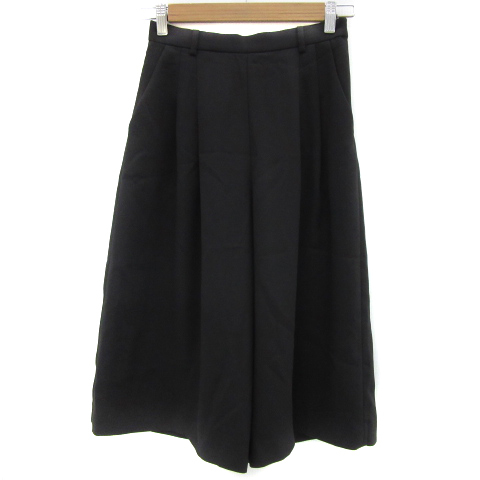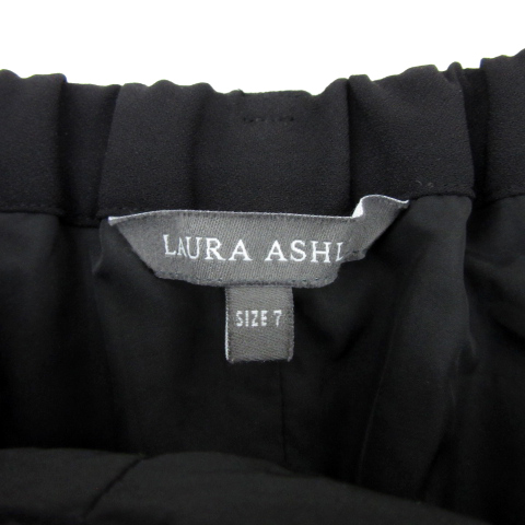 ローラアシュレイ LAURA ASHLEY ガウチョパンツ ワイドパンツ タック 七分丈 無地 7 黒 ブラック /YS2 レディース